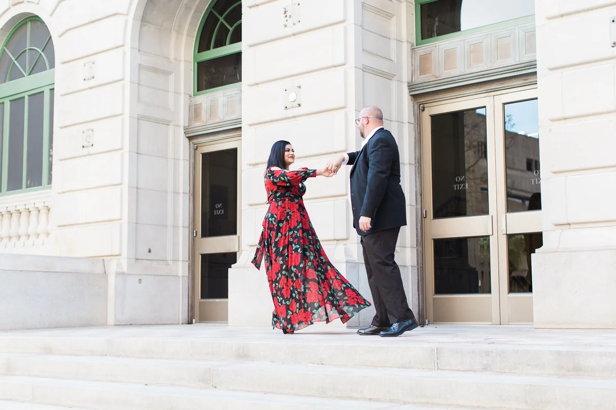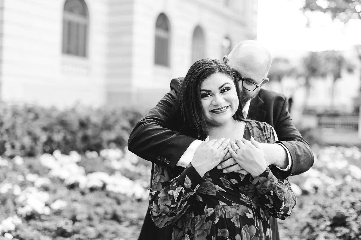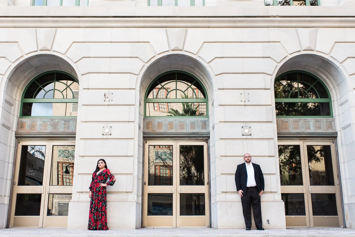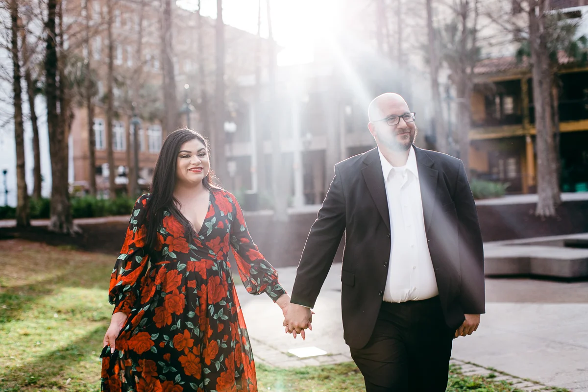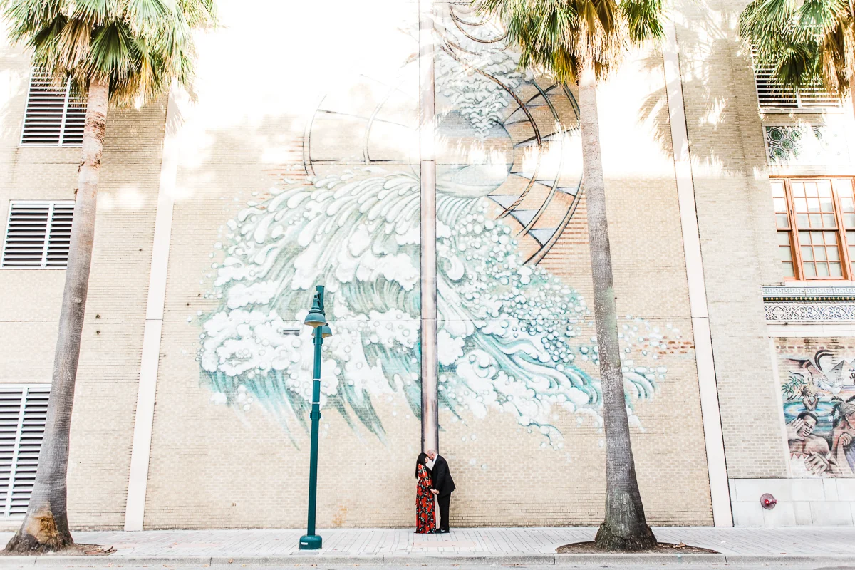 There is so much beautiful scenery around downtown Orlando. The park in front of the Orange County Regional History Center has beautiful trees and gorgeous architecture all around it. Without having to go too far from the park, there are a couple of interesting walls and murals that are perfect for entanglement and wedding photos. Church street is also a great option to add more photos that display the downtown vibe in Orlando. Soledad and Shane’s engagement photos came out absolutely beautiful!