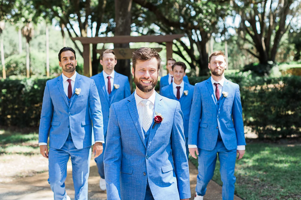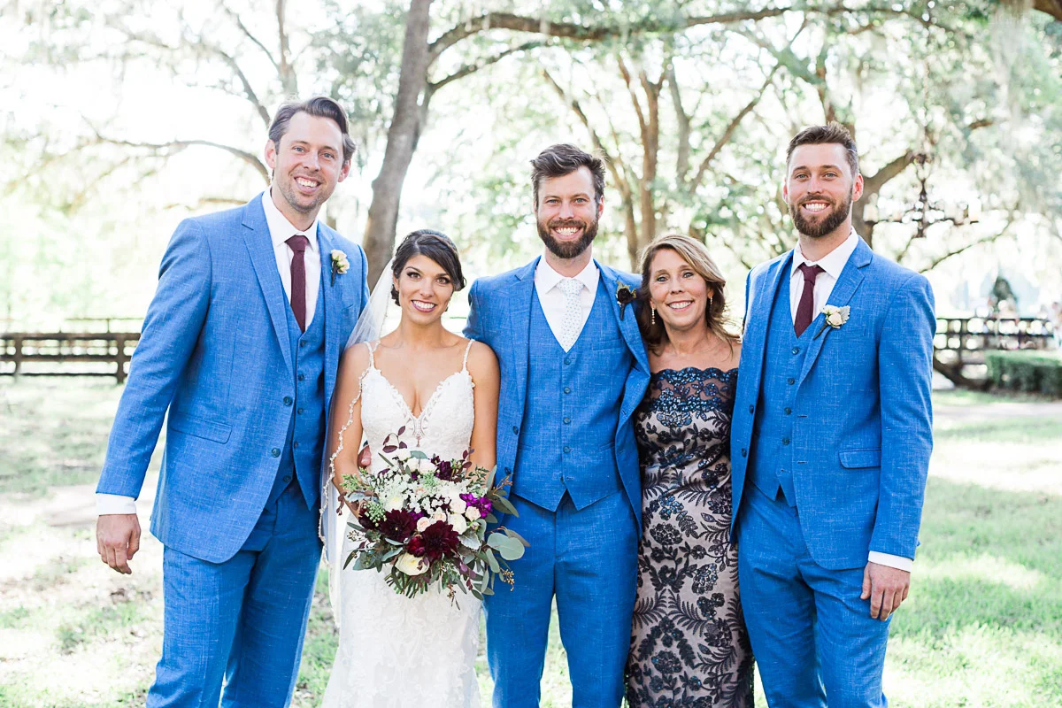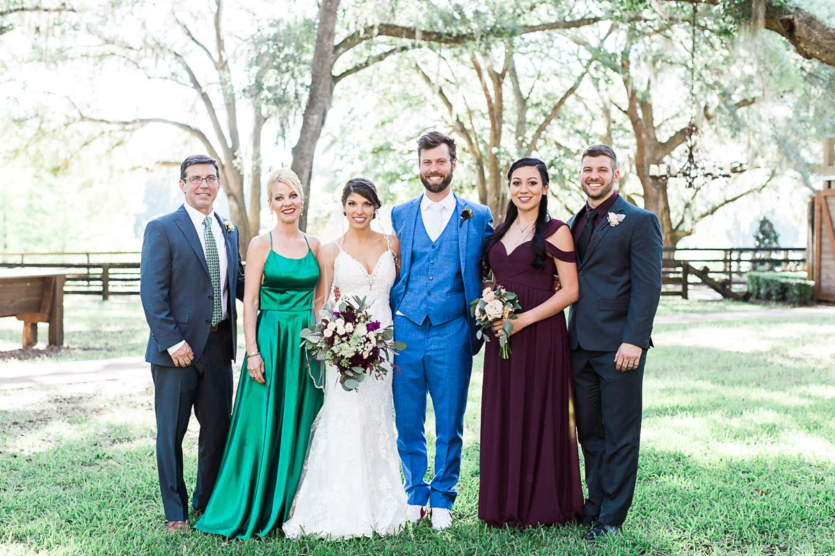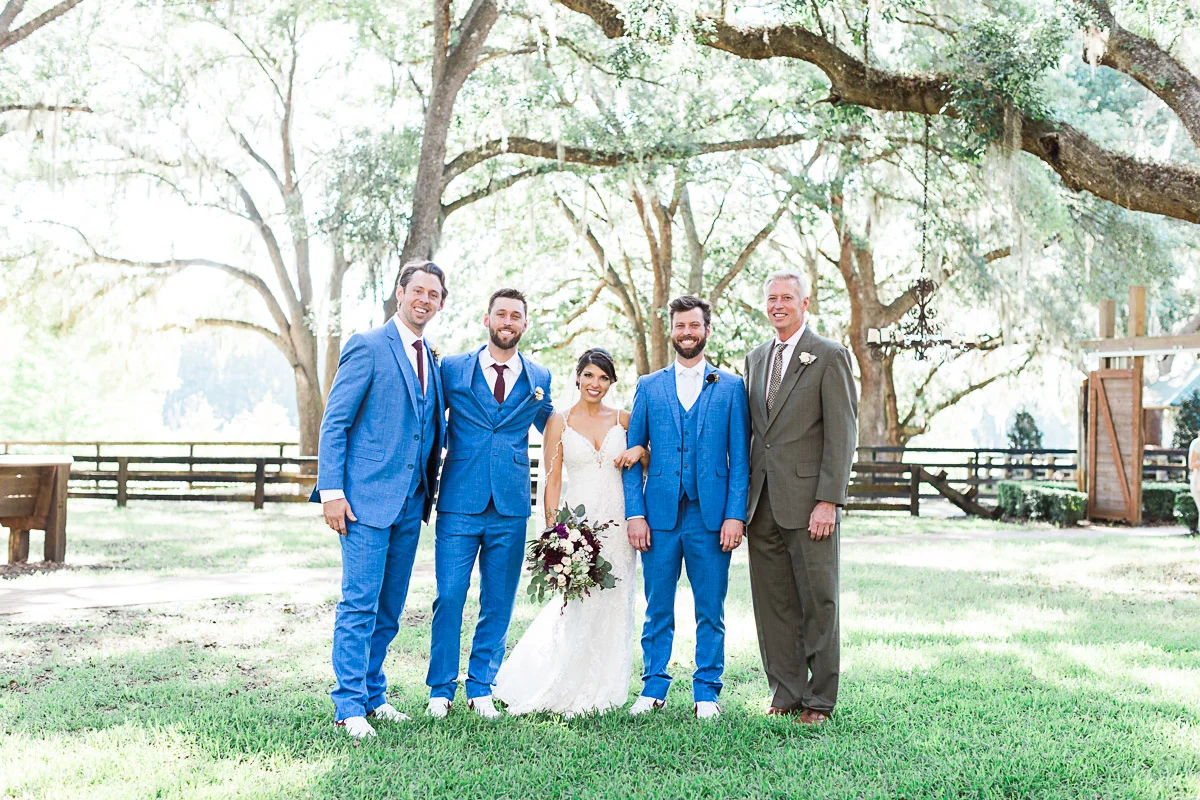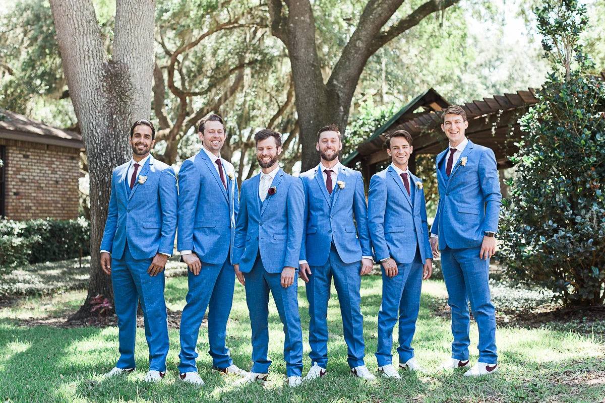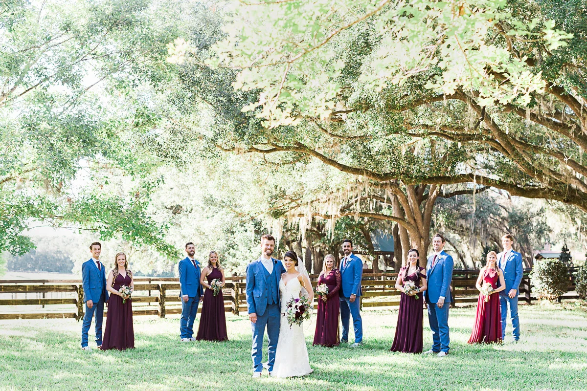 Nicole and Taylor’s beautiful Florida wedding was vibrant and fun from beginning to end. The colors were blue and red/burgundy with all the lush greens that only Club Lake Plantation can provide; a stunning wedding venue for an outdoor ceremony. The ceremony was amazing, the bridal party looked amazing, the weather was amazing, and the bride and groom looked amazing in their wedding photos.