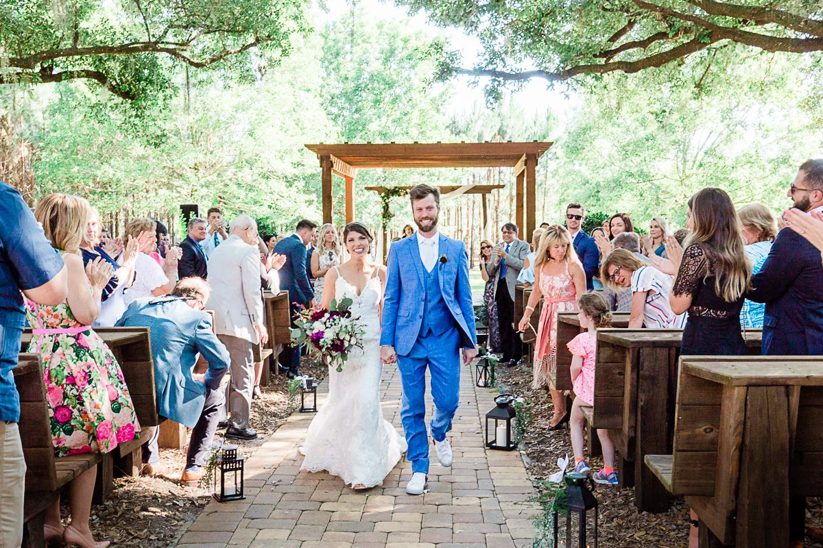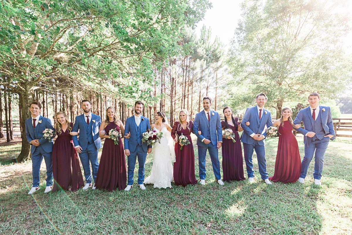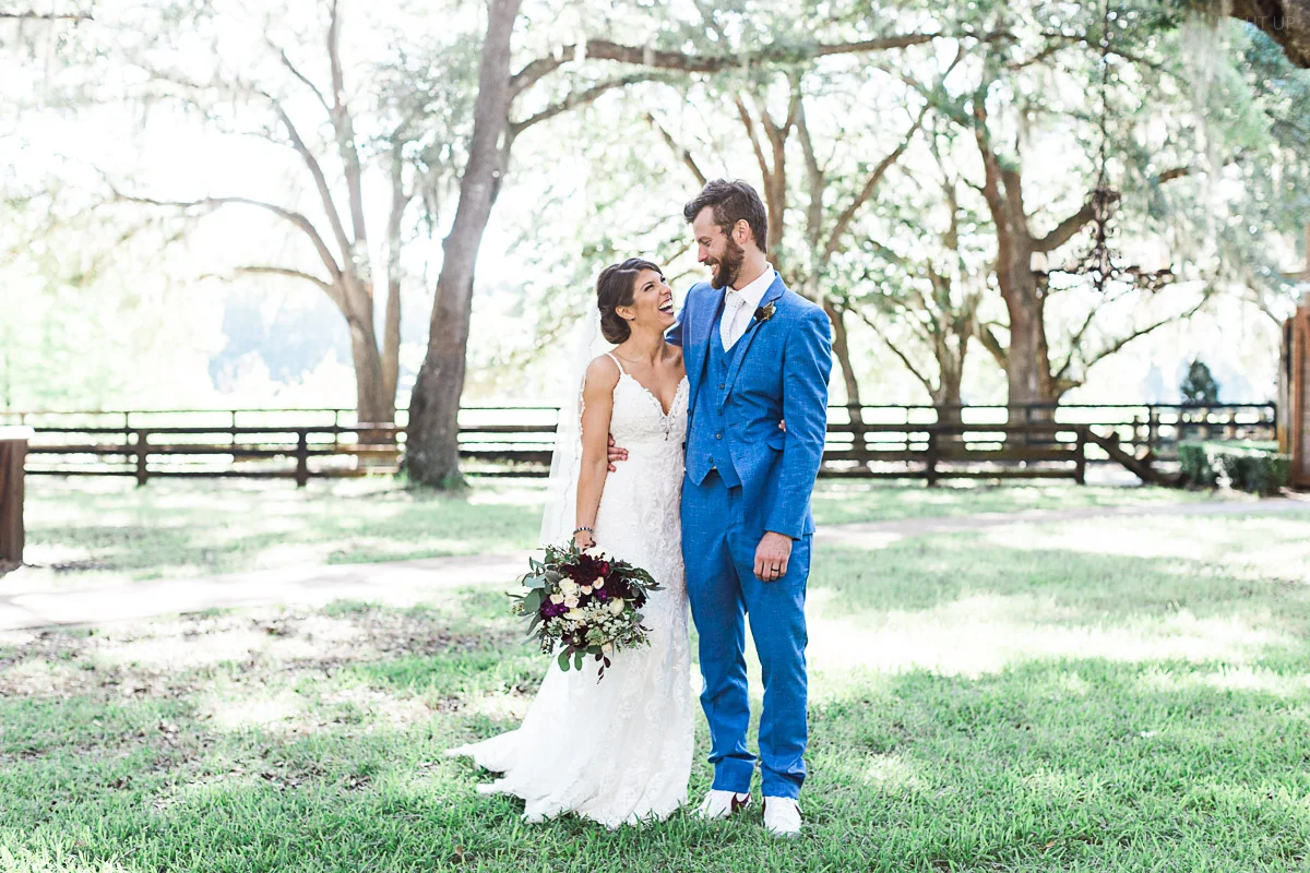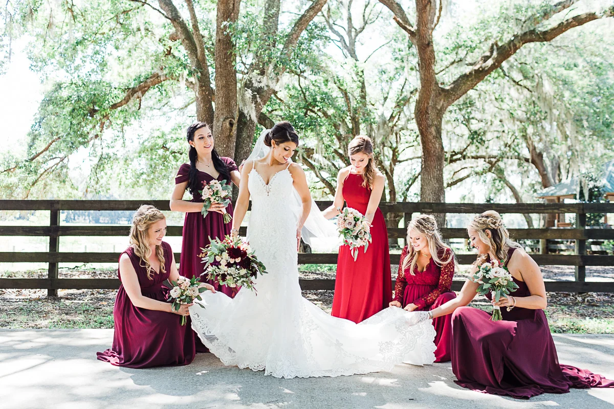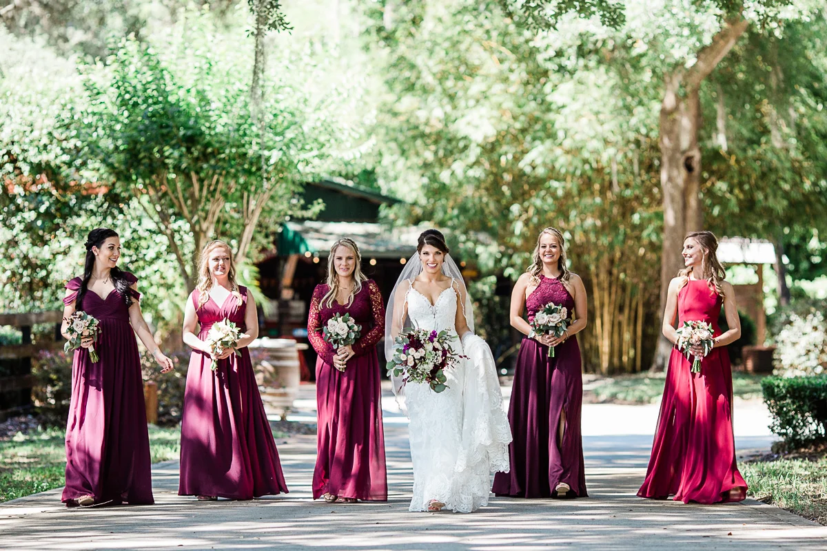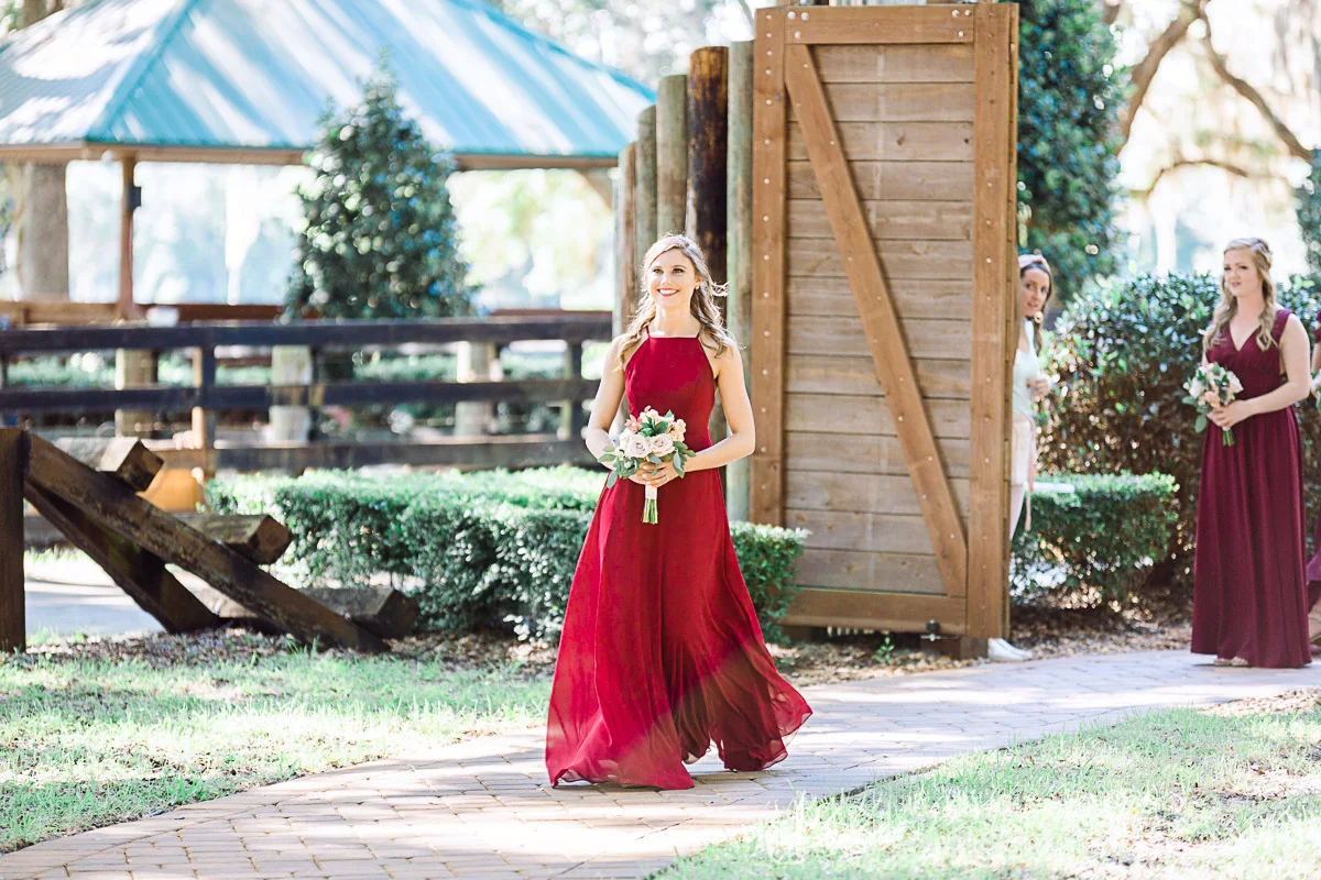Nicole and Taylor’s beautiful Florida wedding was vibrant and fun from beginning to end. The colors were blue and red/burgundy with all the lush greens that only Club Lake Plantation can provide; a stunning wedding venue for an outdoor ceremony. The ceremony was amazing, the bridal party looked amazing, the weather was amazing, and the bride and groom looked amazing in their wedding photos.