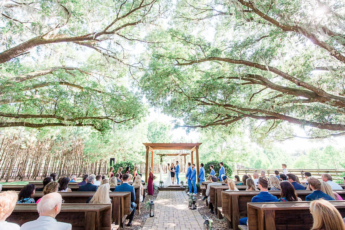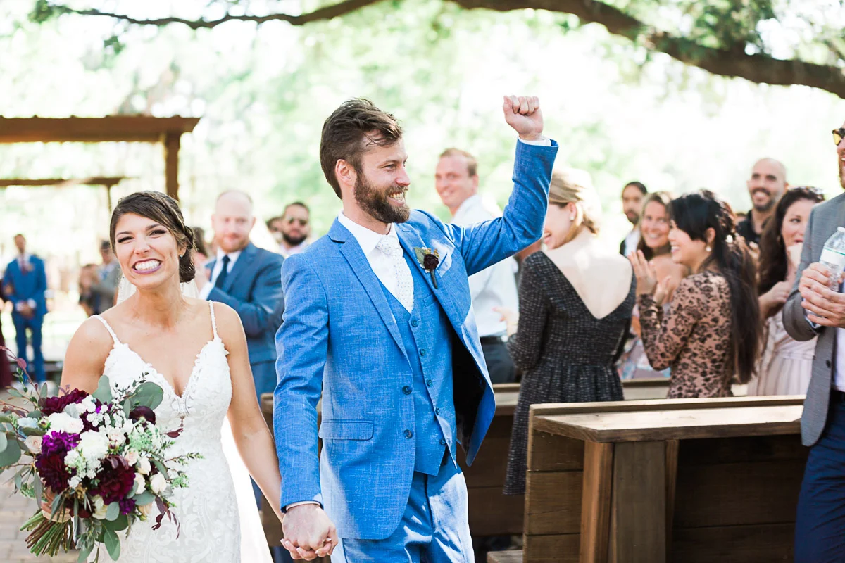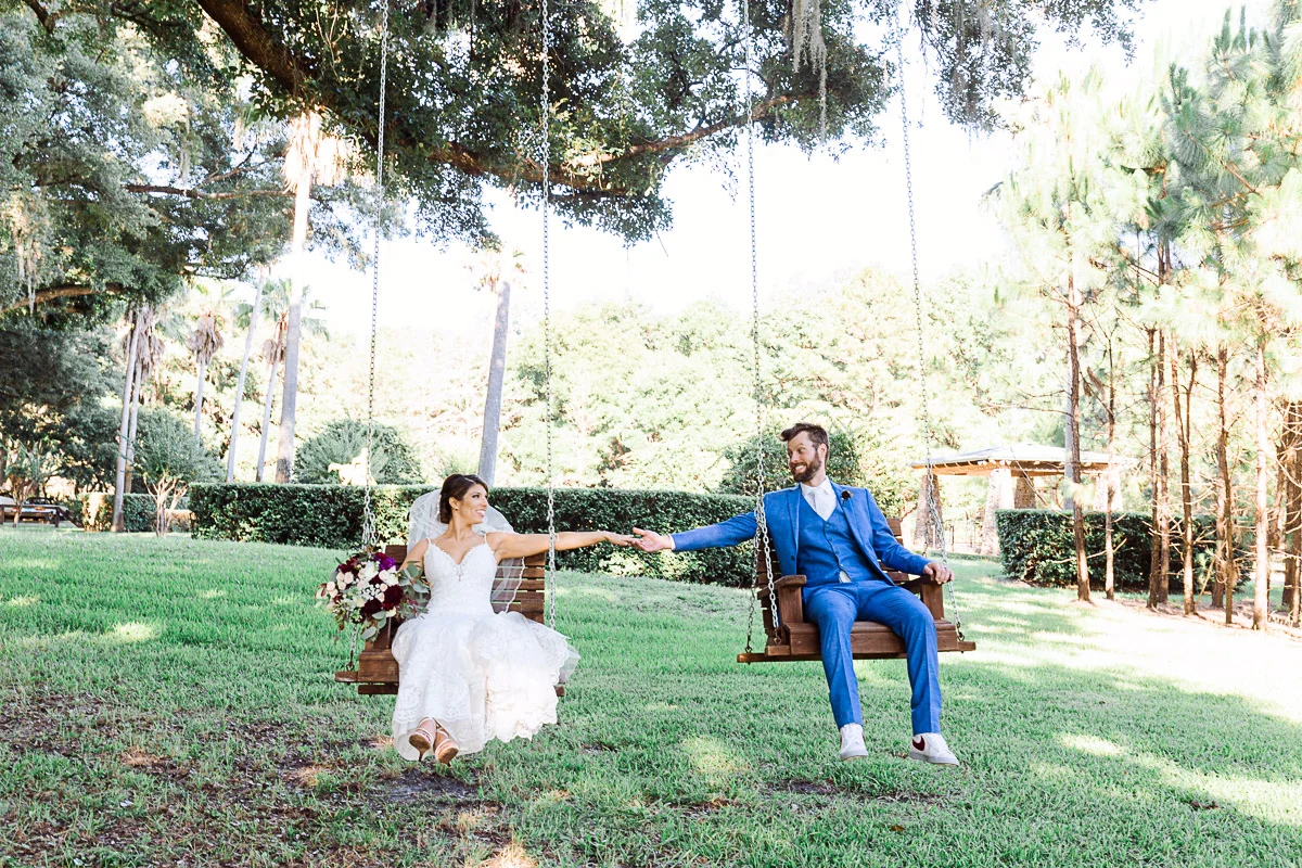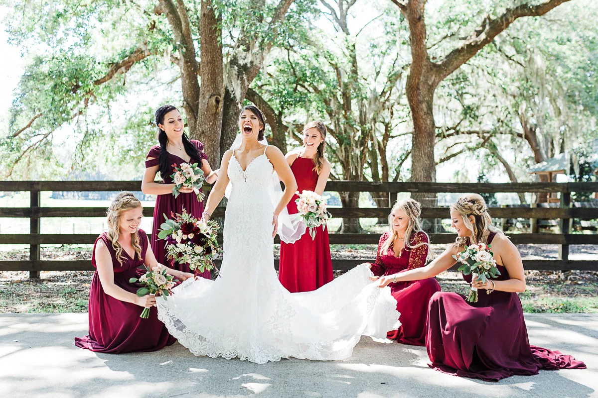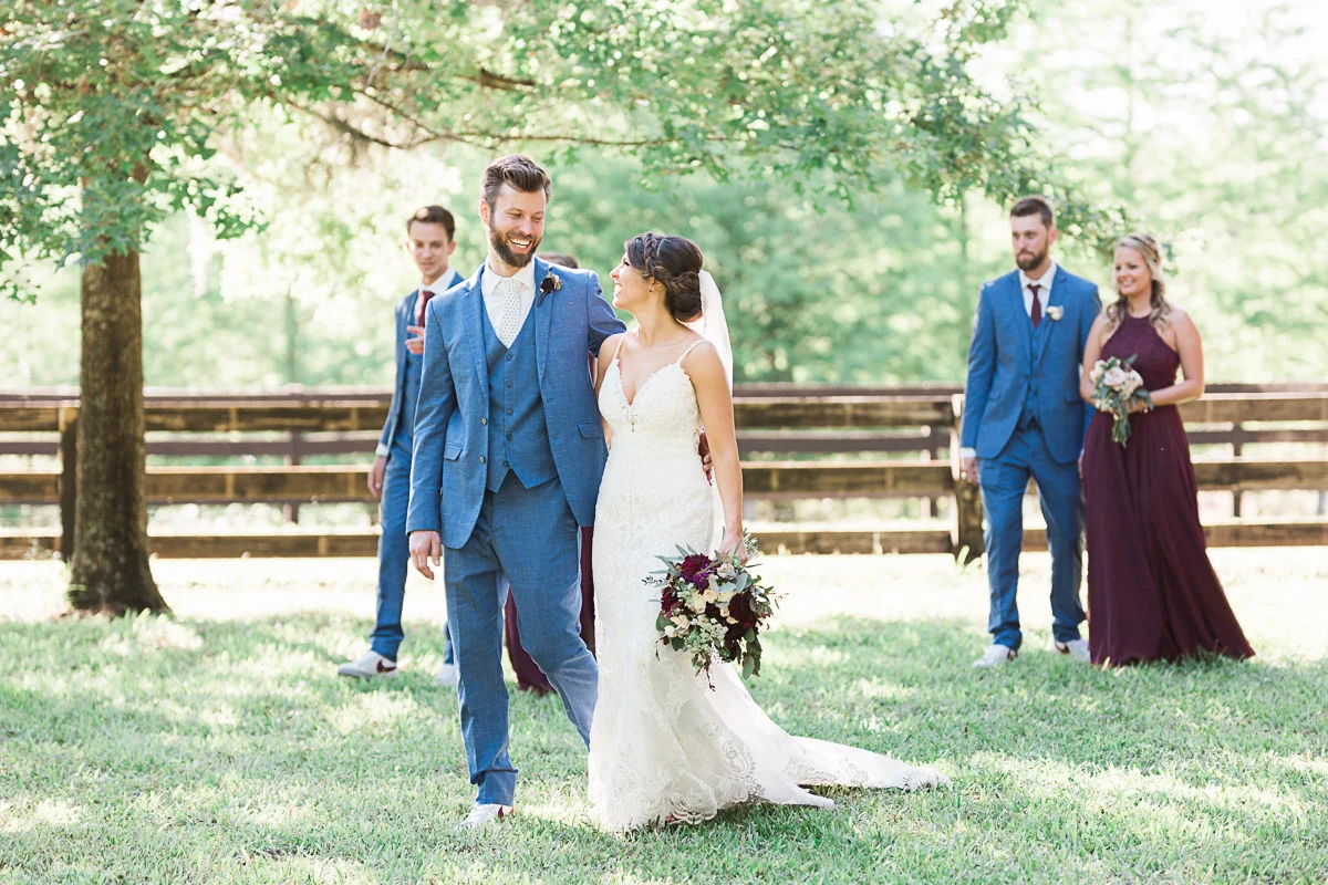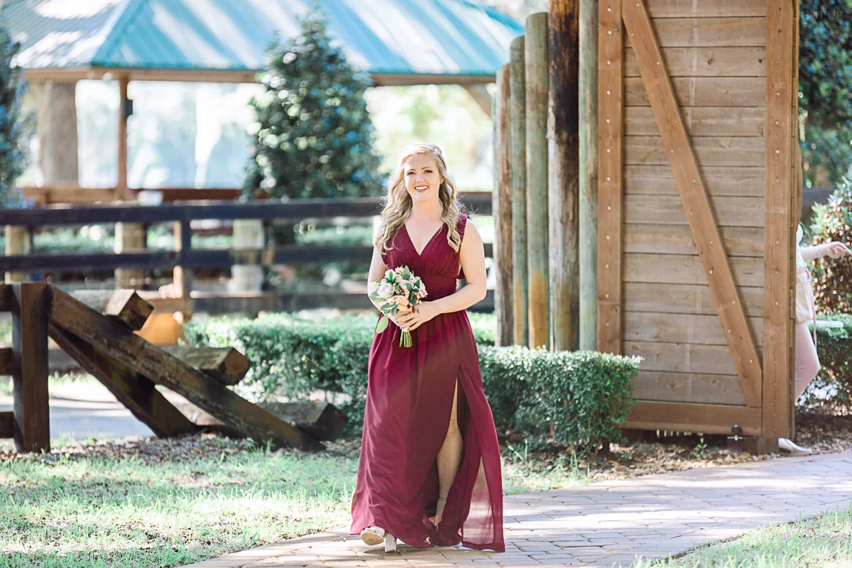 Nicole and Taylor’s beautiful Florida wedding was vibrant and fun from beginning to end. The colors were blue and red/burgundy with all the lush greens that only Club Lake Plantation can provide; a stunning wedding venue for an outdoor ceremony. The ceremony was amazing, the bridal party looked amazing, the weather was amazing, and the bride and groom looked amazing in their wedding photos.