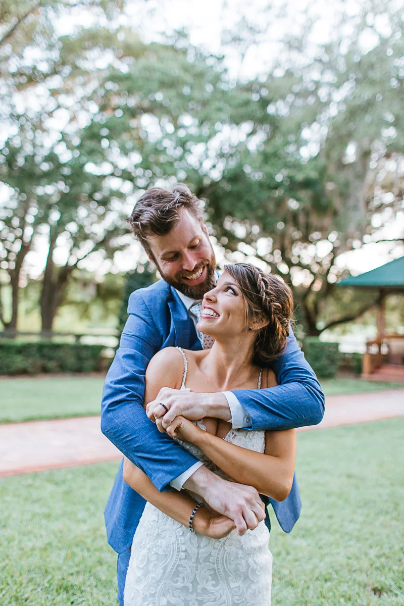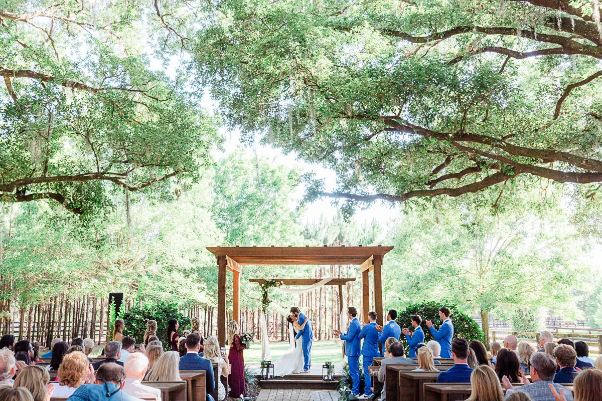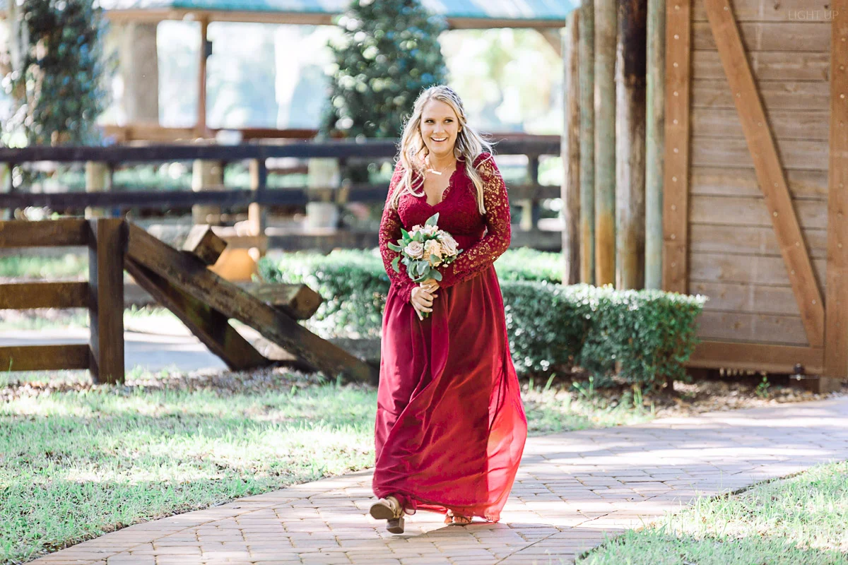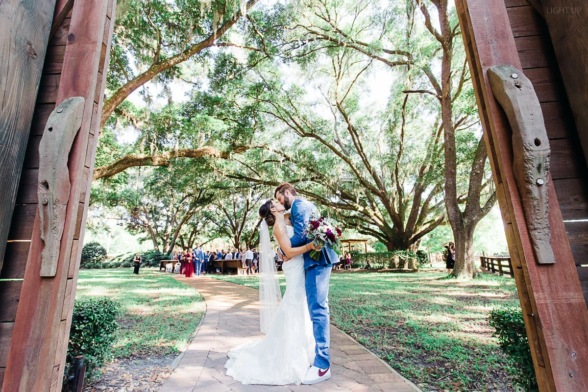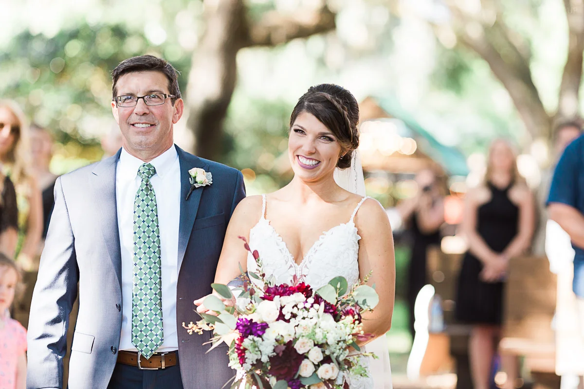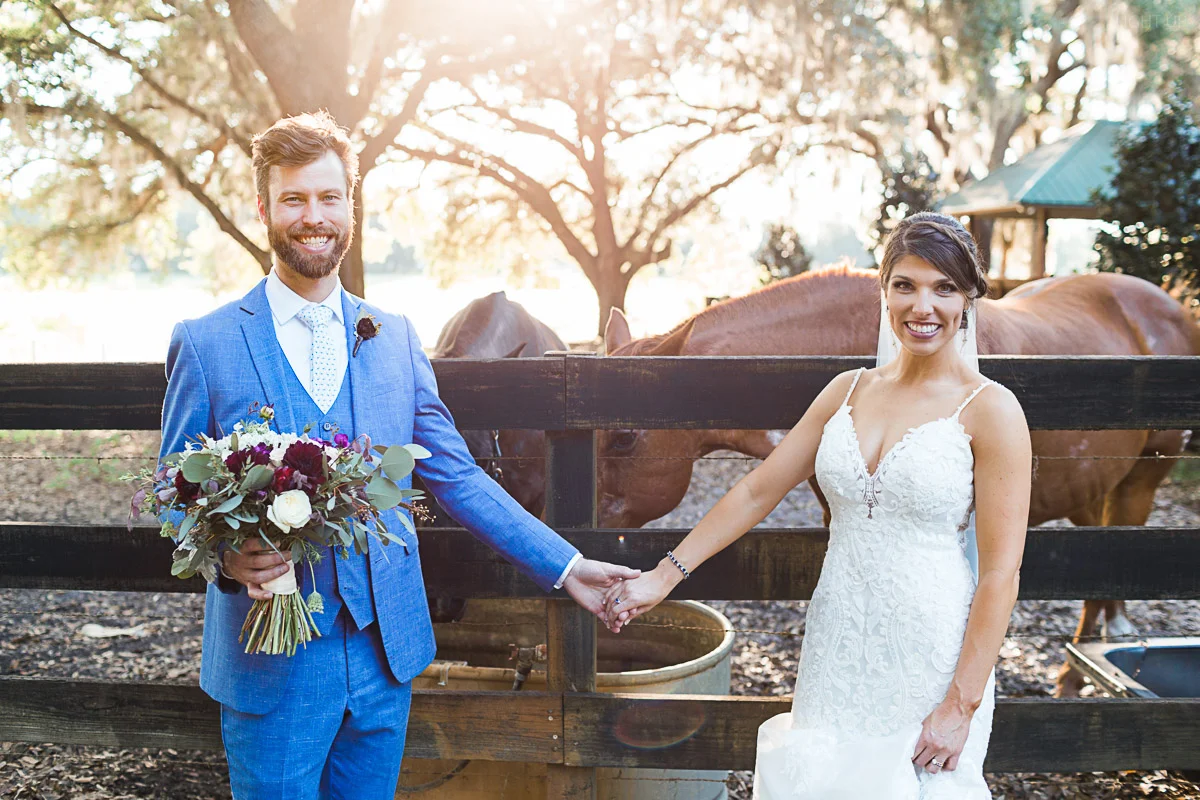 Nicole and Taylor’s beautiful Florida wedding was vibrant and fun from beginning to end. The colors were blue and red/burgundy with all the lush greens that only Club Lake Plantation can provide; a stunning wedding venue for an outdoor ceremony. The ceremony was amazing, the bridal party looked amazing, the weather was amazing, and the bride and groom looked amazing in their wedding photos.