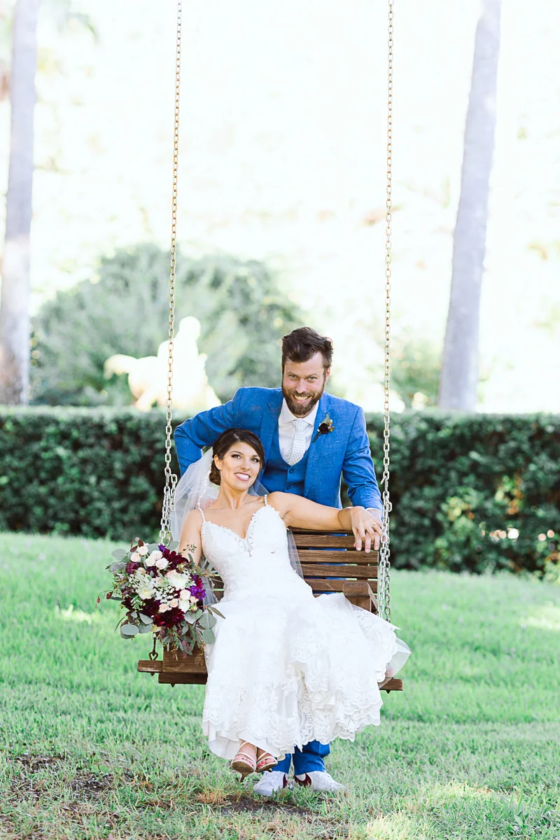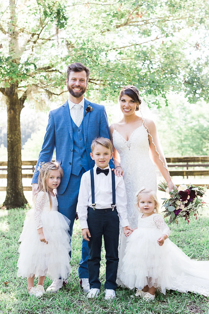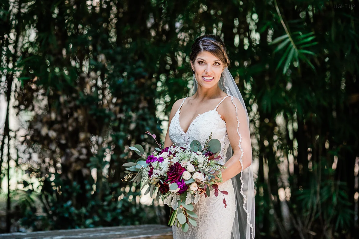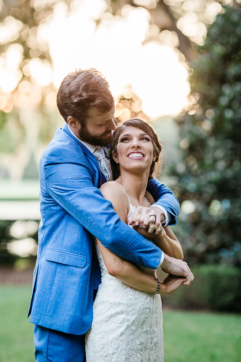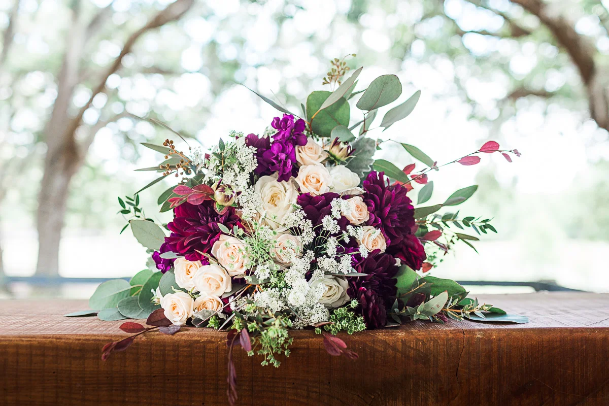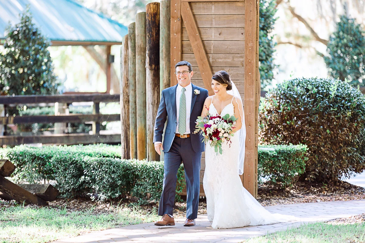 Nicole and Taylor’s beautiful Florida wedding was vibrant and fun from beginning to end. The colors were blue and red/burgundy with all the lush greens that only Club Lake Plantation can provide; a stunning wedding venue for an outdoor ceremony. The ceremony was amazing, the bridal party looked amazing, the weather was amazing, and the bride and groom looked amazing in their wedding photos.
