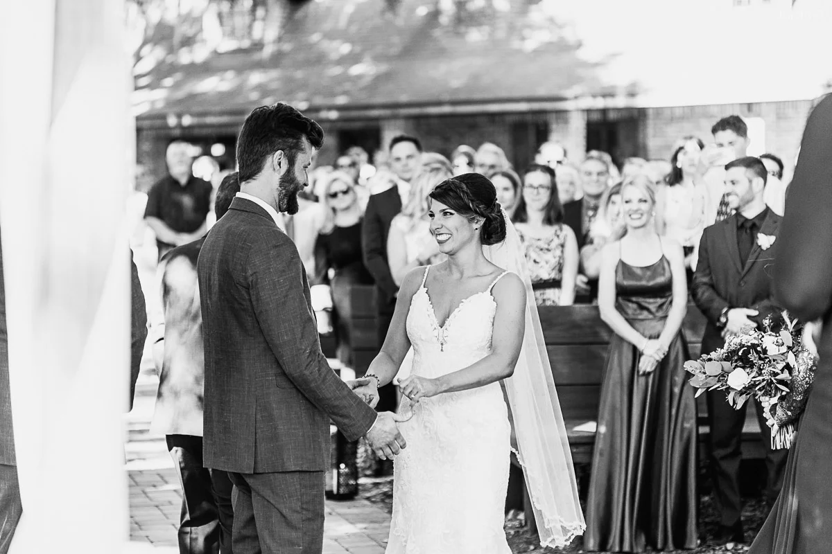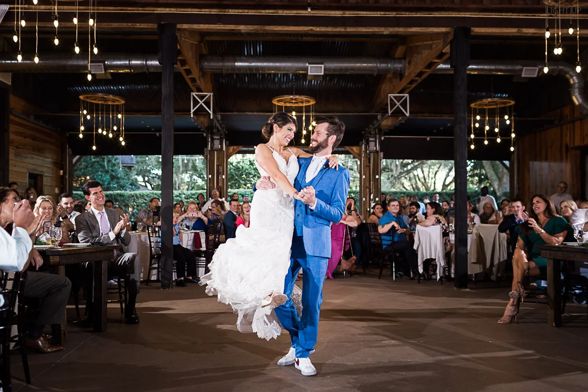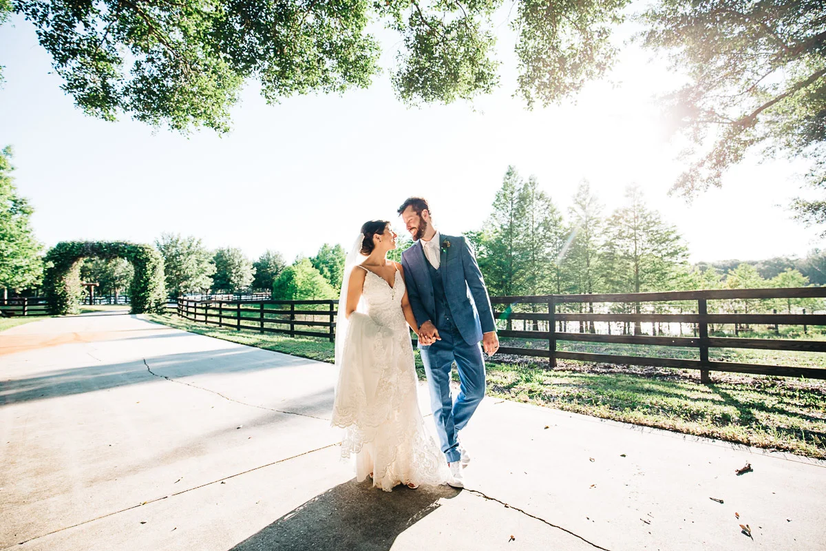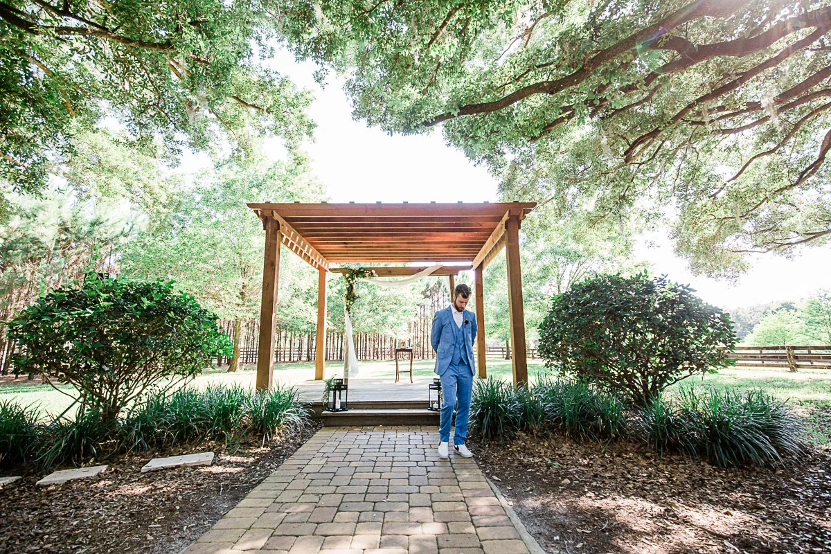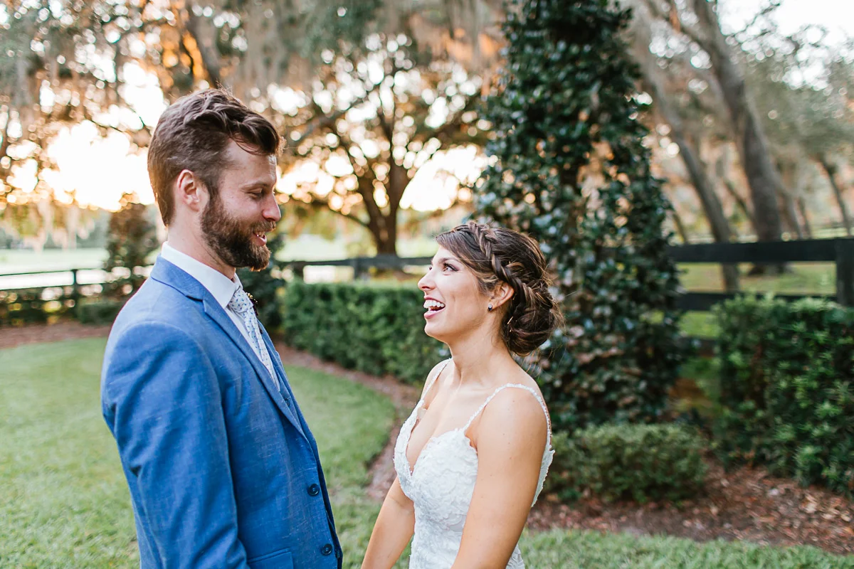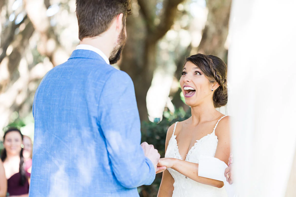 Nicole and Taylor’s beautiful Florida wedding was vibrant and fun from beginning to end. The colors were blue and red/burgundy with all the lush greens that only Club Lake Plantation can provide; a stunning wedding venue for an outdoor ceremony. The ceremony was amazing, the bridal party looked amazing, the weather was amazing, and the bride and groom looked amazing in their wedding photos.