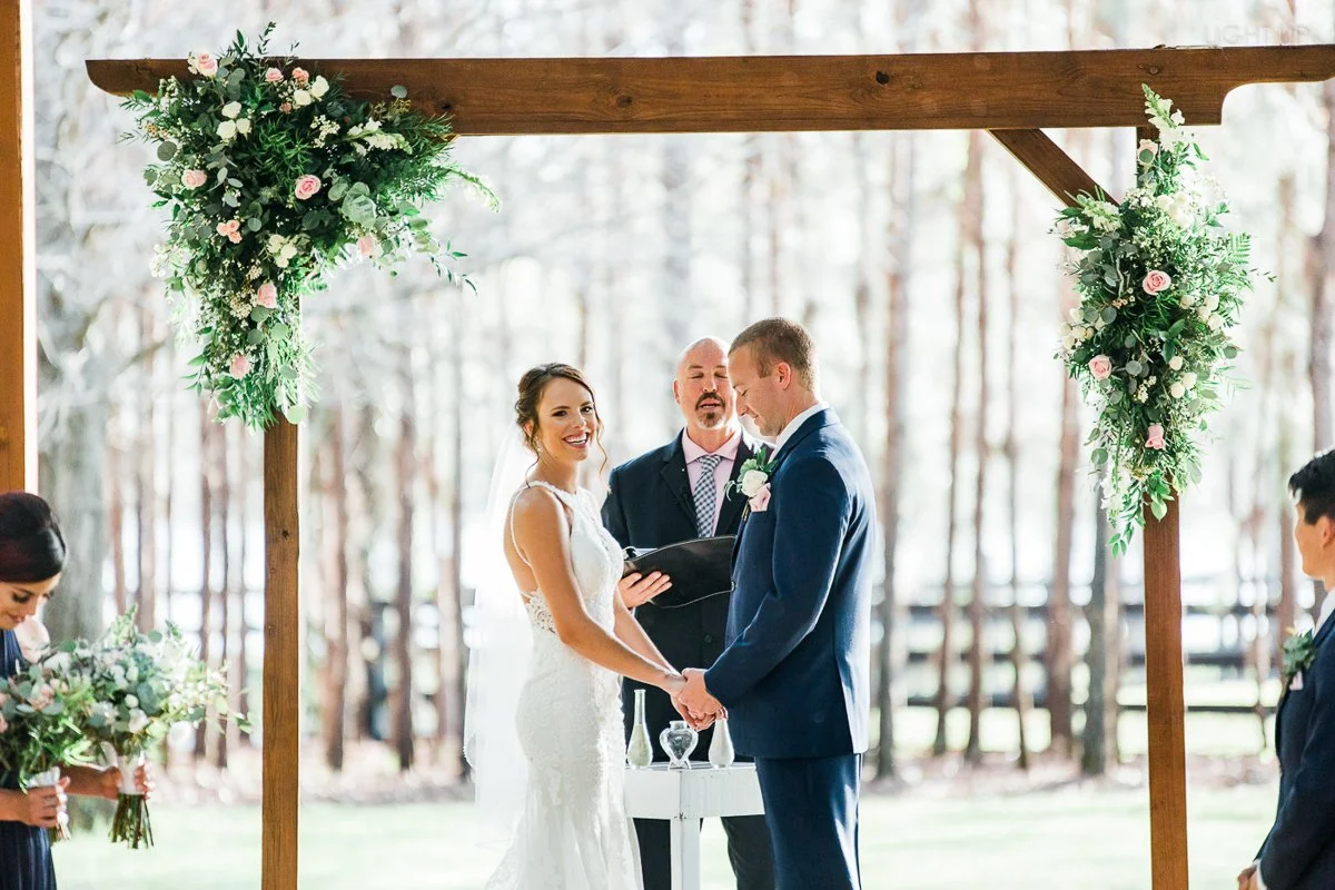 The bride and groom had a first look prior to the ceremony which is always a great idea for those who want to knock out some of the wedding photos earlier in the day. The weather was just perfect during the ceremony. The reception took place under the barn and the party went on until the sparkler exit. See information for all participating vendors below.