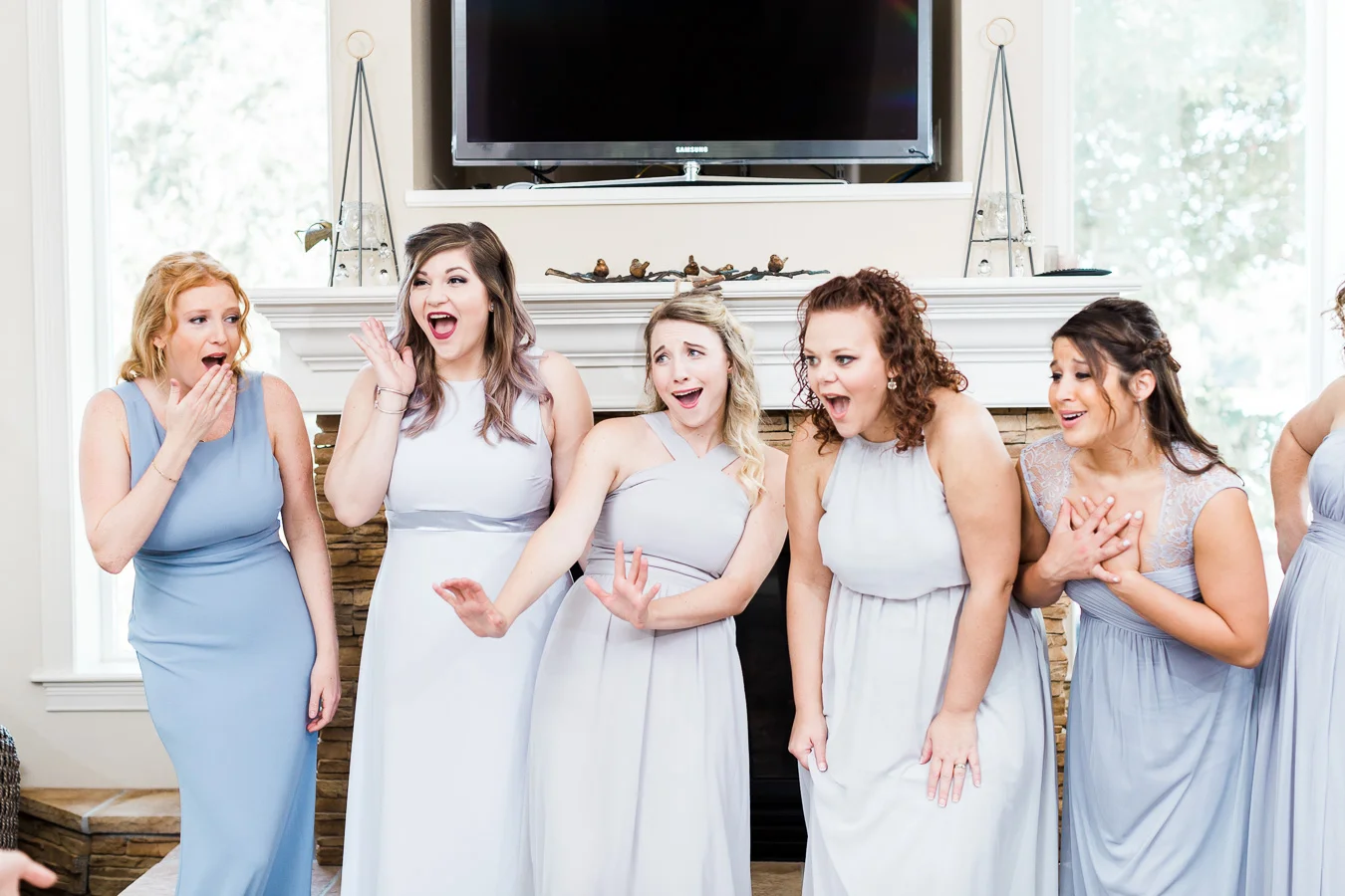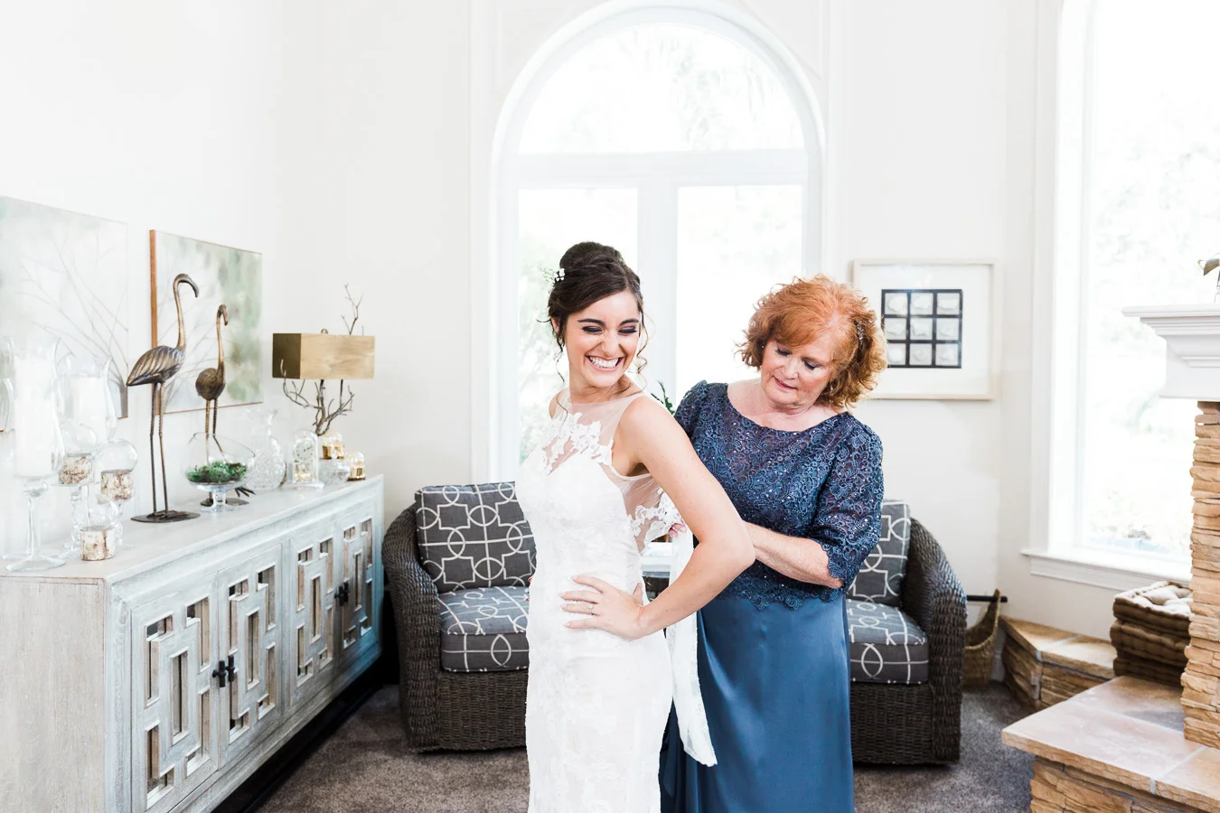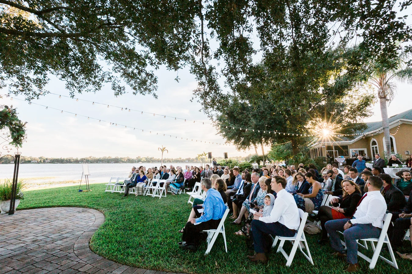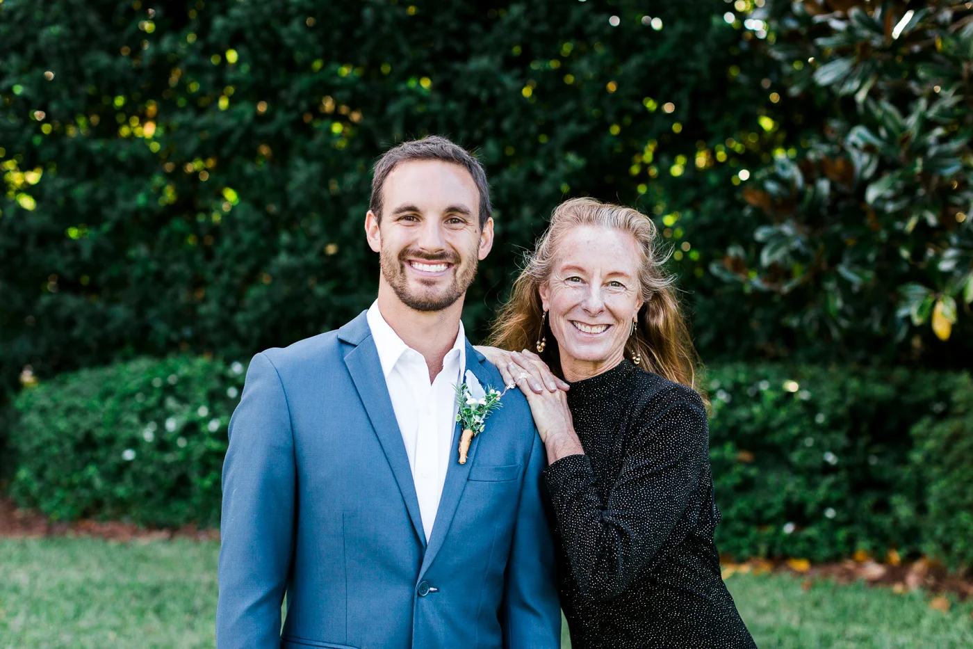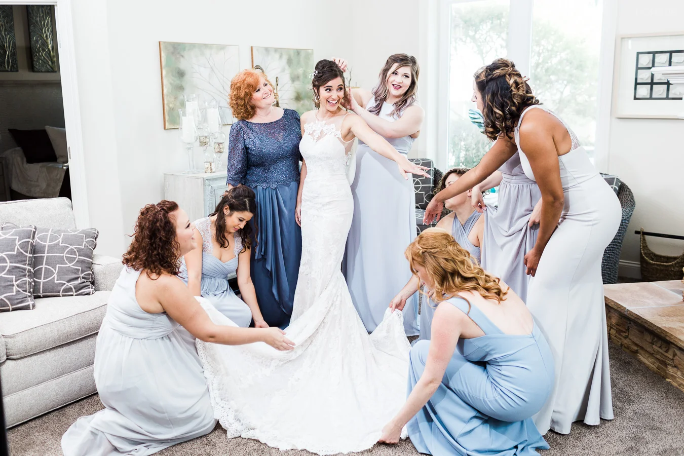 This wedding took place on a private property in Mount Dora that had a gorgeous lawn lined up with a beautiful hedge and trees. When we do a first-look; we simply positioned the groom where we know we are going to capture beautiful photos because the background is free of distractions and the lighting is coming from the best angle. Once we give the bride the “go ahead” nod, we try to stay out of the way to let the moment unfold organically as we watch and document it with our cameras. We don’t interrupt this moment or stage any movements, because this is a real moment charged with real emotion. And just like that, the first-look is over in a few blinks. For many couples, this moment takes a lot of pressure off from all the planning leading up to this day, so it’s only natural that the portraits to follow will be a lot of fun for the bride and groom. In this case, Robin and Tom did made it easy for us to photograph stunning wedding photos around the property followed by the bridal party photos and family portraits.