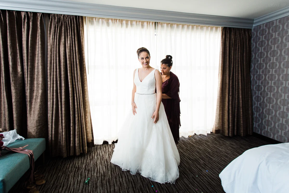 This beautiful wedding in Melbourne, Florida was everything Alisha and Mark had hoped for. It was a classic wedding that captured their love and everything about them. Alisha and Mark were some of the sweetest people we have ever worked with. We absolutely LOVE these wedding photos! The preparations early in the morning took place at the Hilton Melbourne Rialto Place where everyone had fun getting ready for the big day.