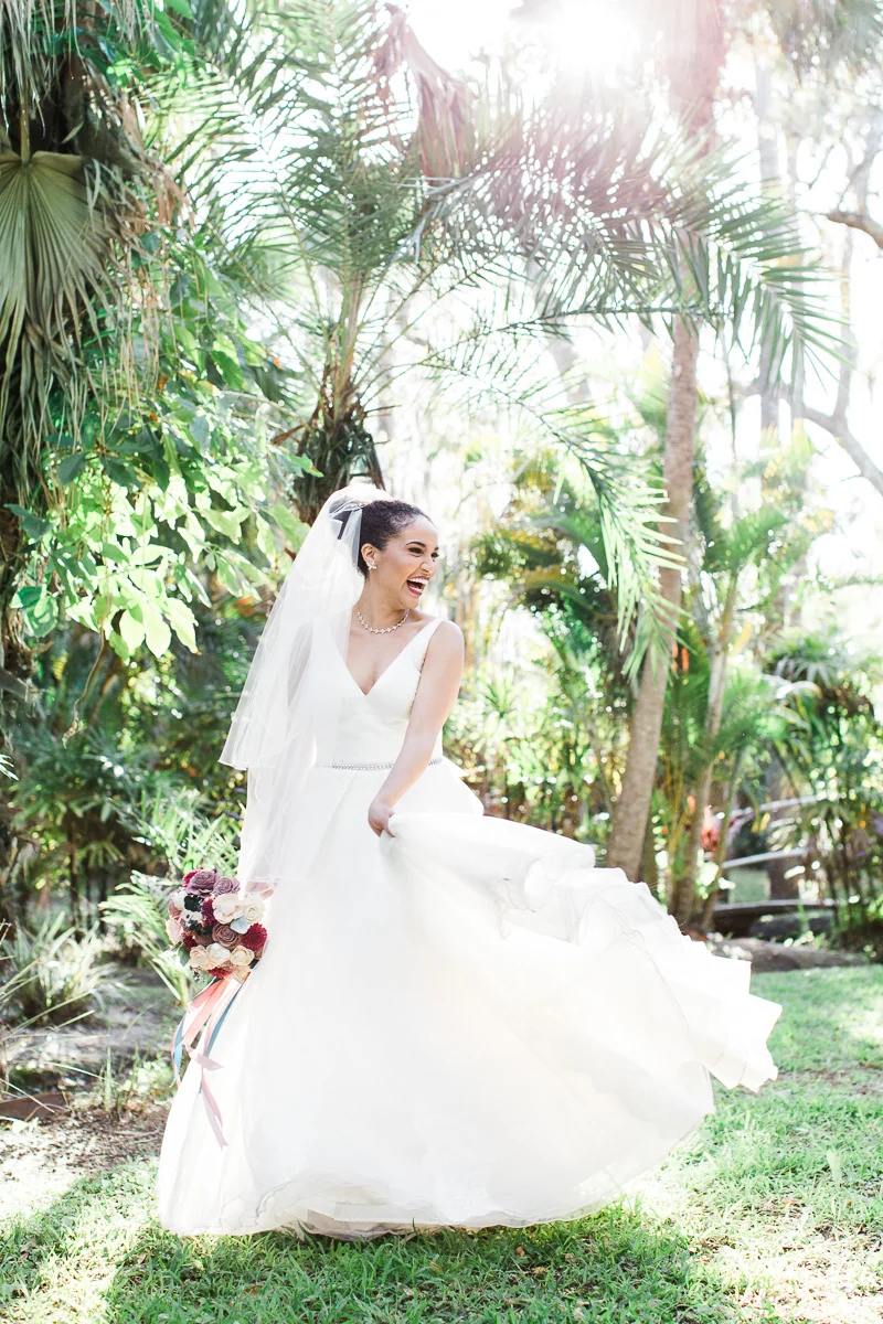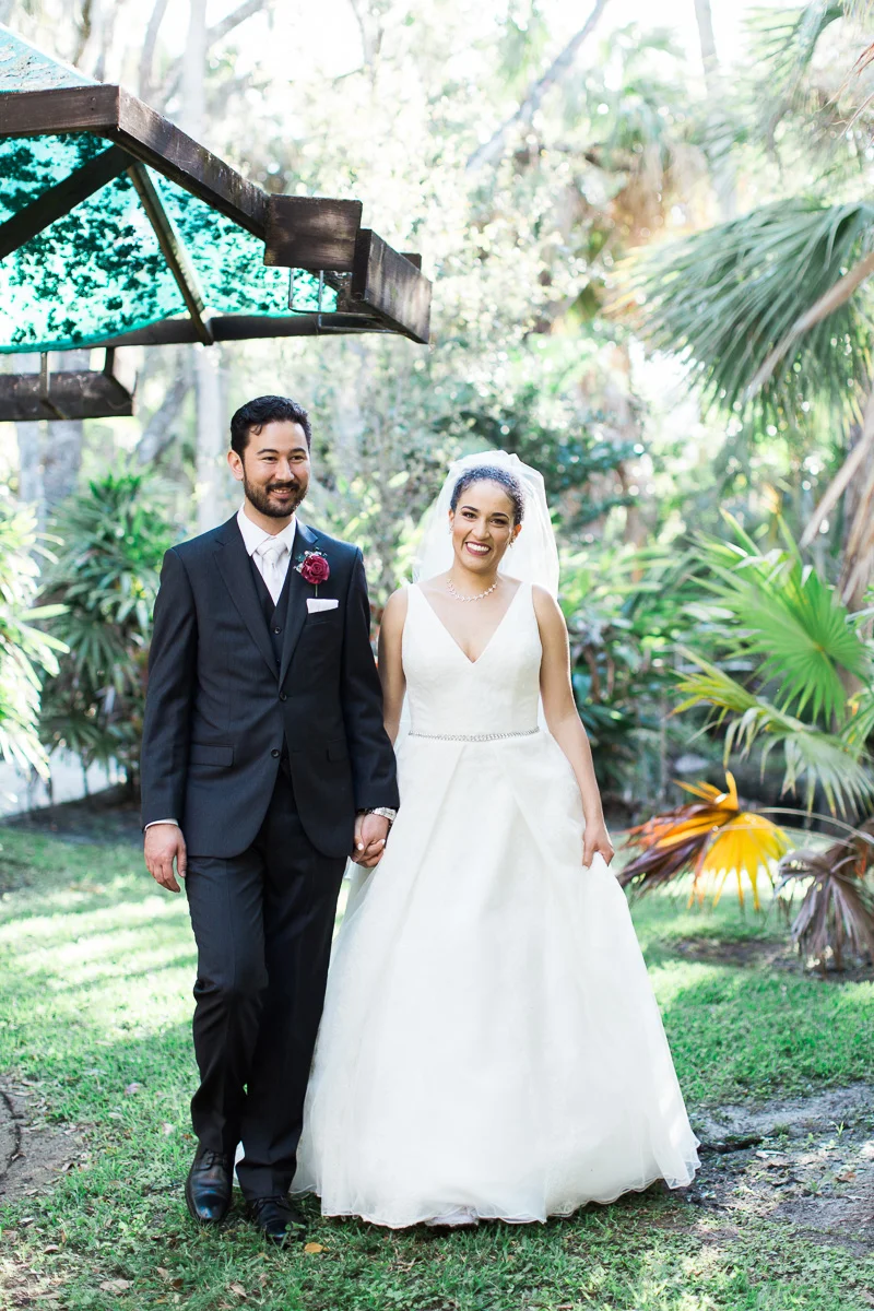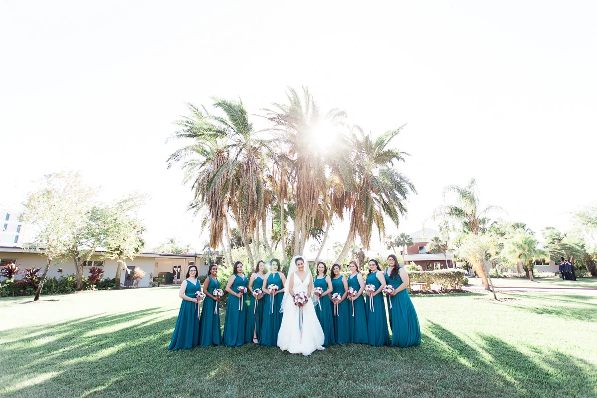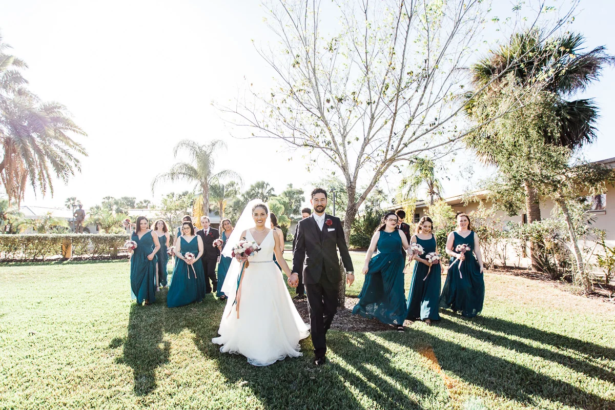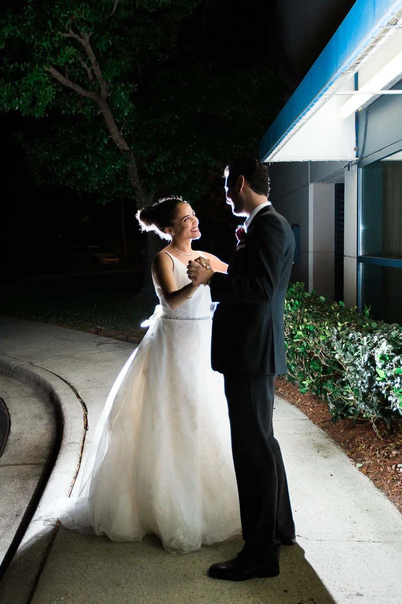 After the church ceremony, we took portraits of the wedding party at FIT Botanical Gardens in Melbourne, Florida. This location was great for natural light wedding photos. The reception was filled with dancing and fun, and we even got a chance to do a few nighttime portraits of the bride and groom.