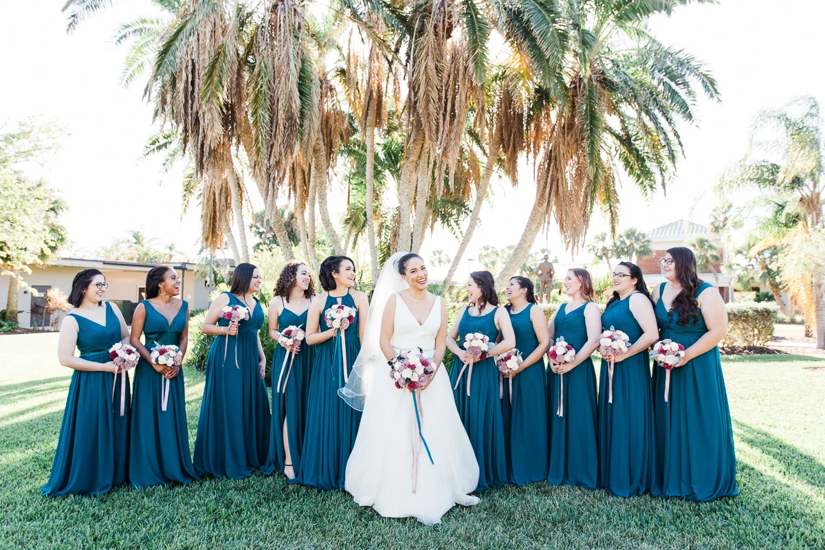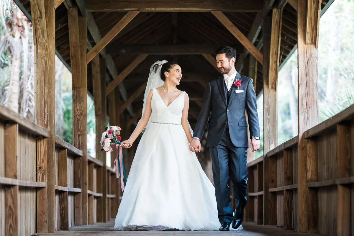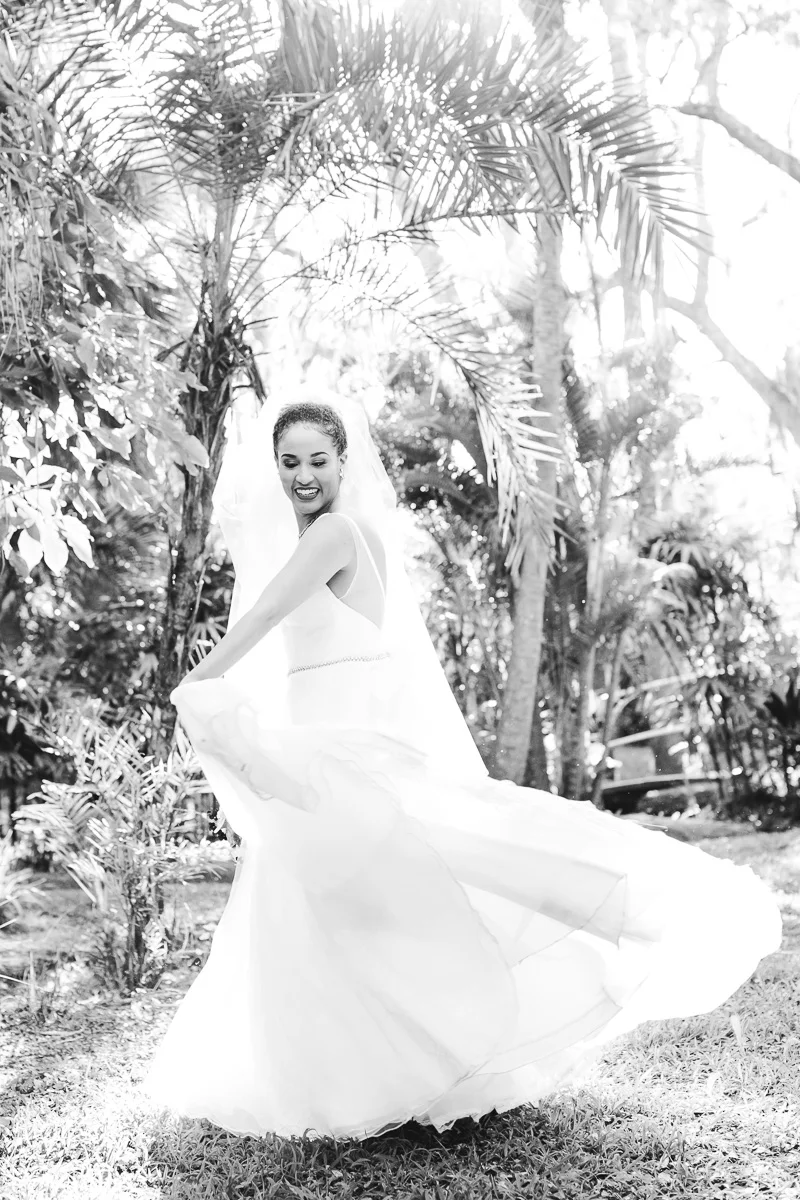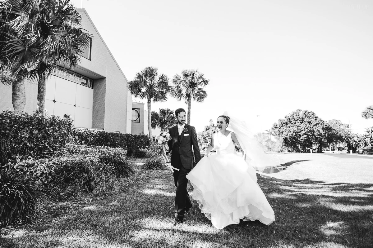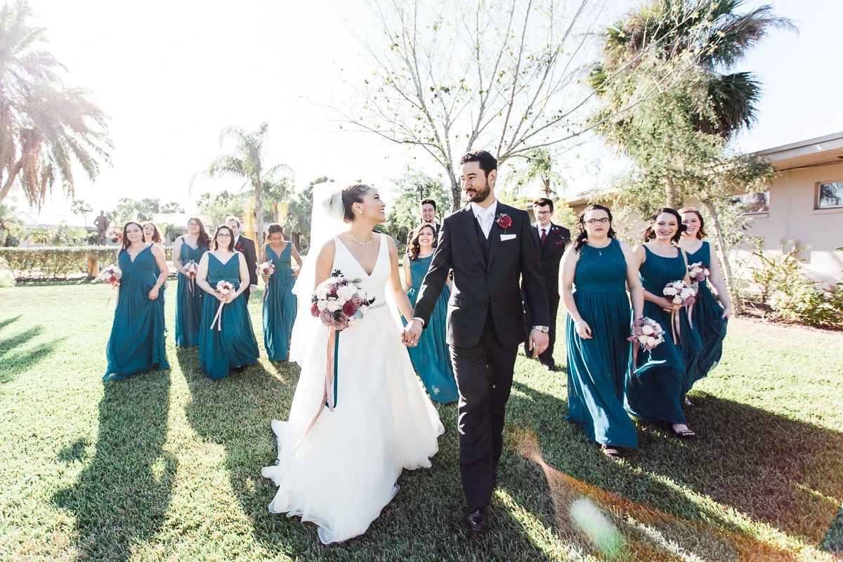 After the church ceremony, we took portraits of the wedding party at FIT Botanical Gardens in Melbourne, Florida. This location was great for natural light wedding photos. The reception was filled with dancing and fun, and we even got a chance to do a few nighttime portraits of the bride and groom.