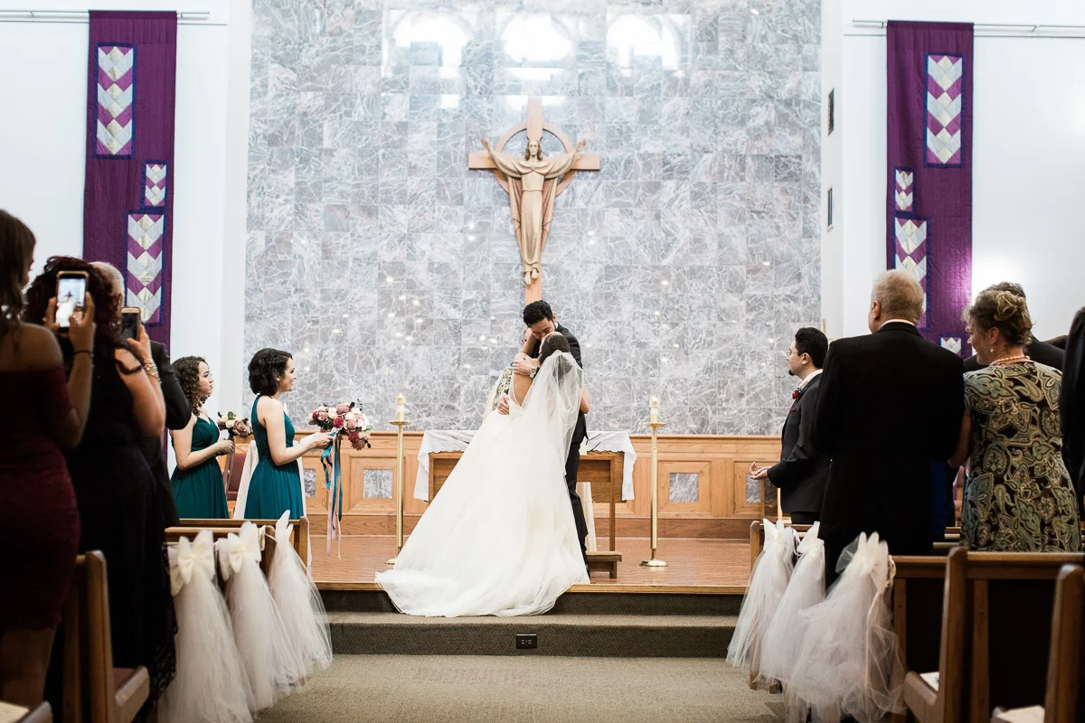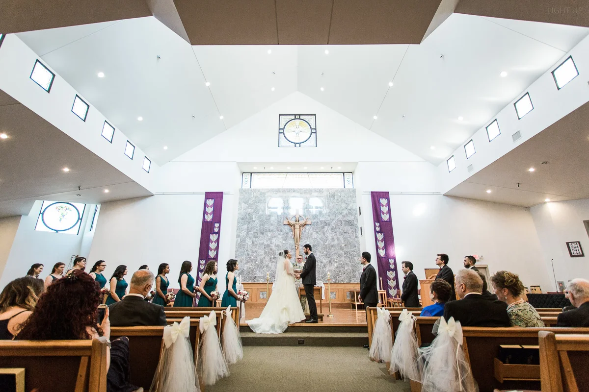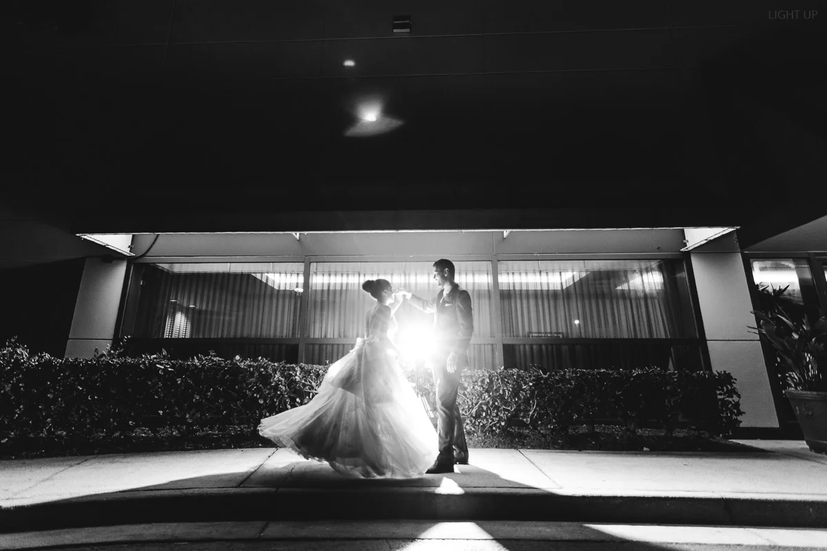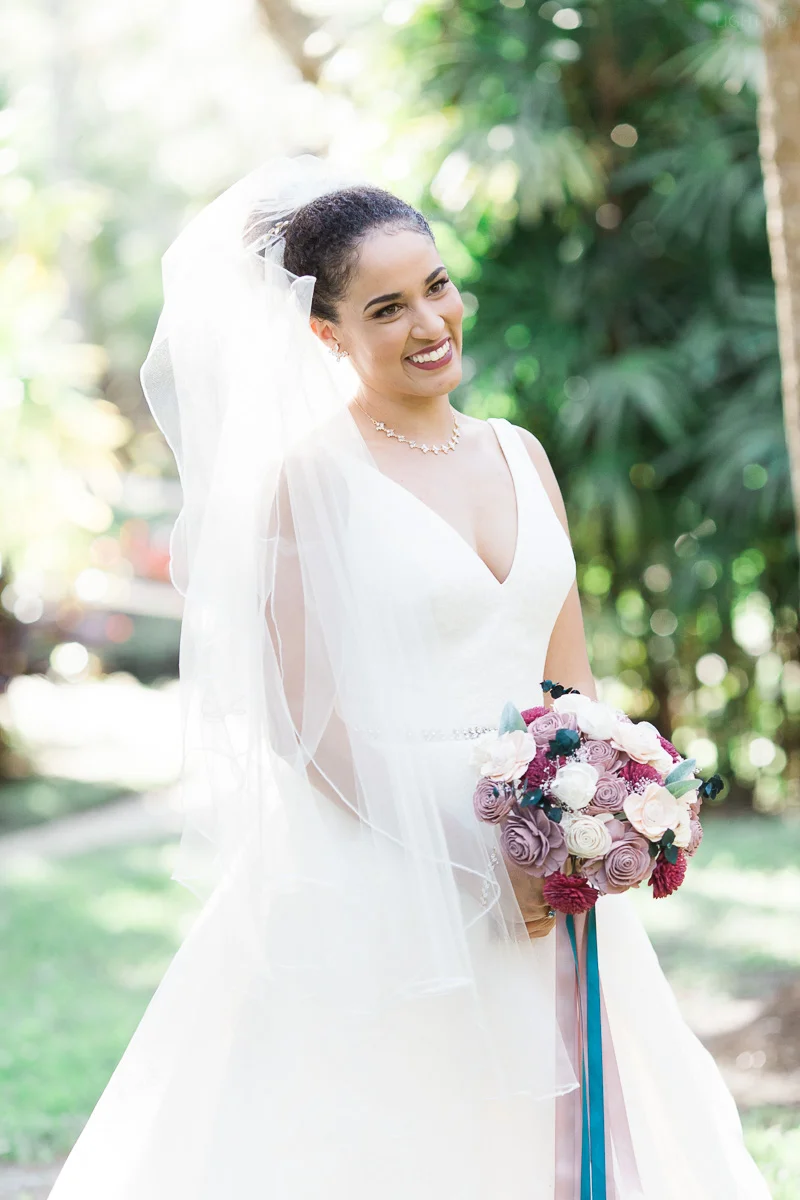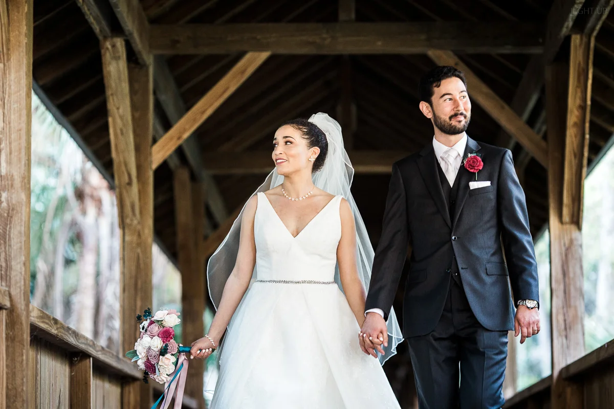 After the church ceremony, we took portraits of the wedding party at FIT Botanical Gardens in Melbourne, Florida. This location was great for natural light wedding photos. The reception was filled with dancing and fun, and we even got a chance to do a few nighttime portraits of the bride and groom.