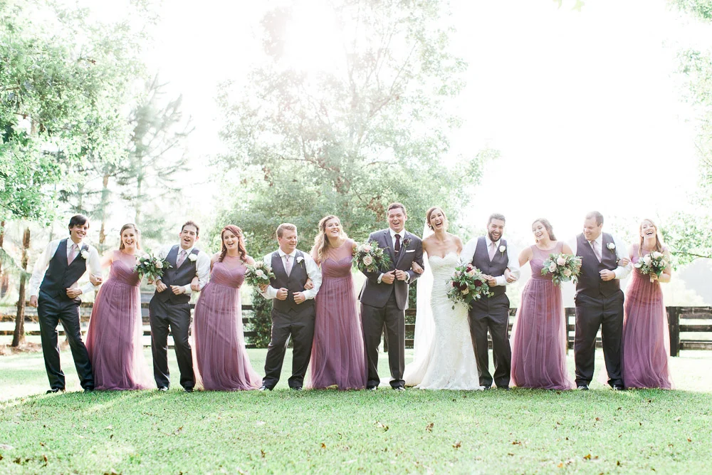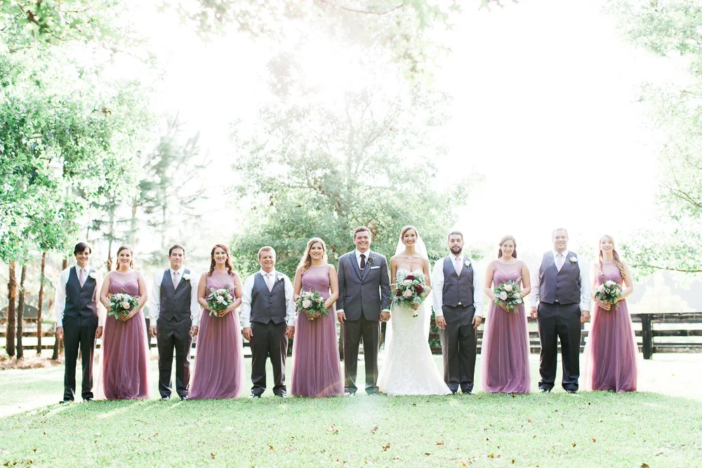 This wedding was so beautiful! Club Lake Plantation is a gorgeous venue that provides a picturesque location for every moment of the day; getting-ready, ceremony, and reception. Nicole wore a stunning Pronovias wedding dress accompanied by a beautiful bouquet. J.p and the guys were nothing but fun and a great group to photograph as you can tell by the photographs. Nicole’s bridesmaids wore gorgeous wisteria dresses and were absolutely squad goals.