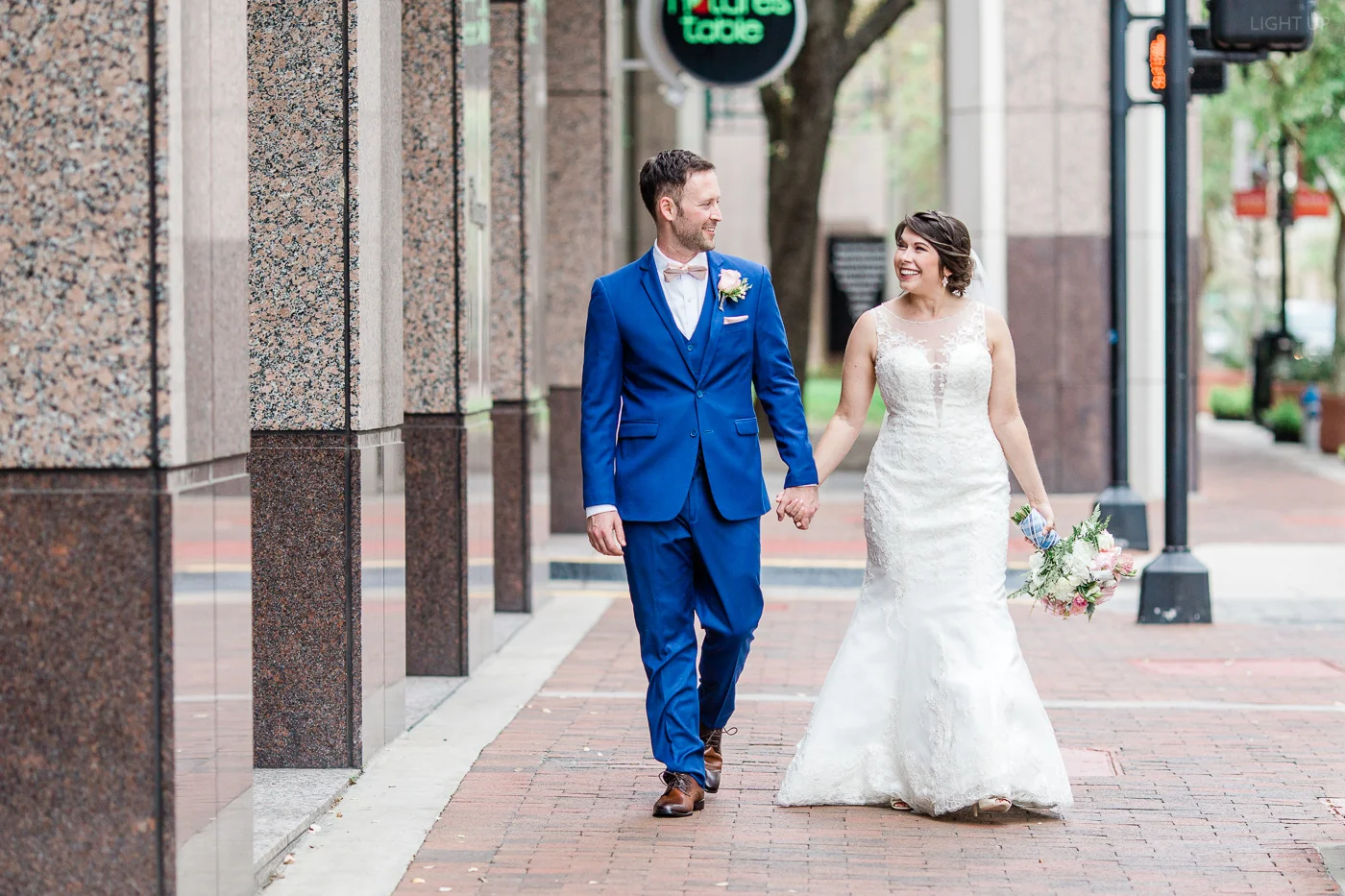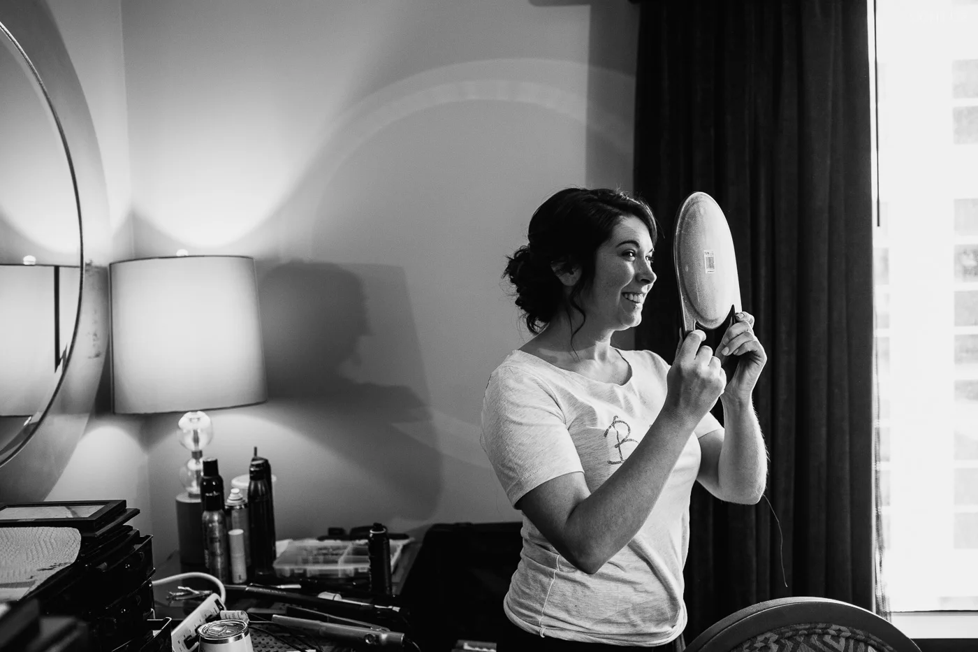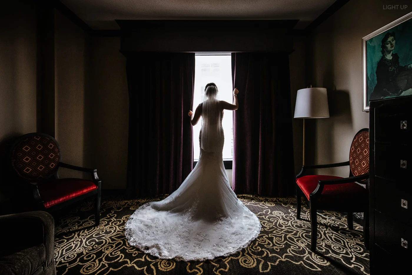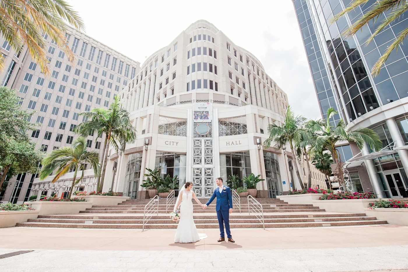 It was truly an honor that Elizabeth picked us out of over 50 local wedding photographers in the Orlando area that replied to her post. After the most amazing engagement session in downtown St Petersburg, we couldn’t wait for their wedding day to arrive. The bride & groom’s getting-ready photos took place a the elegant Grand Bohemian Hotel in downtown Orlando followed by their first-look and a round of lifestyle wedding photos with the city’s skyline in the background.
