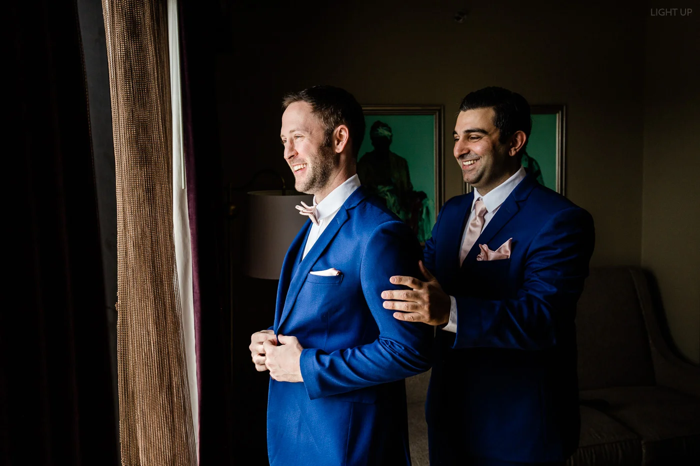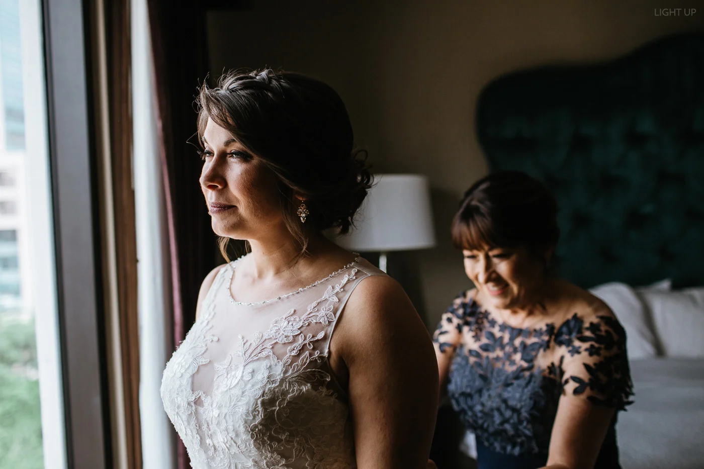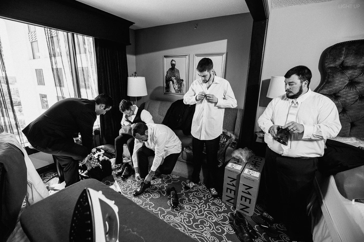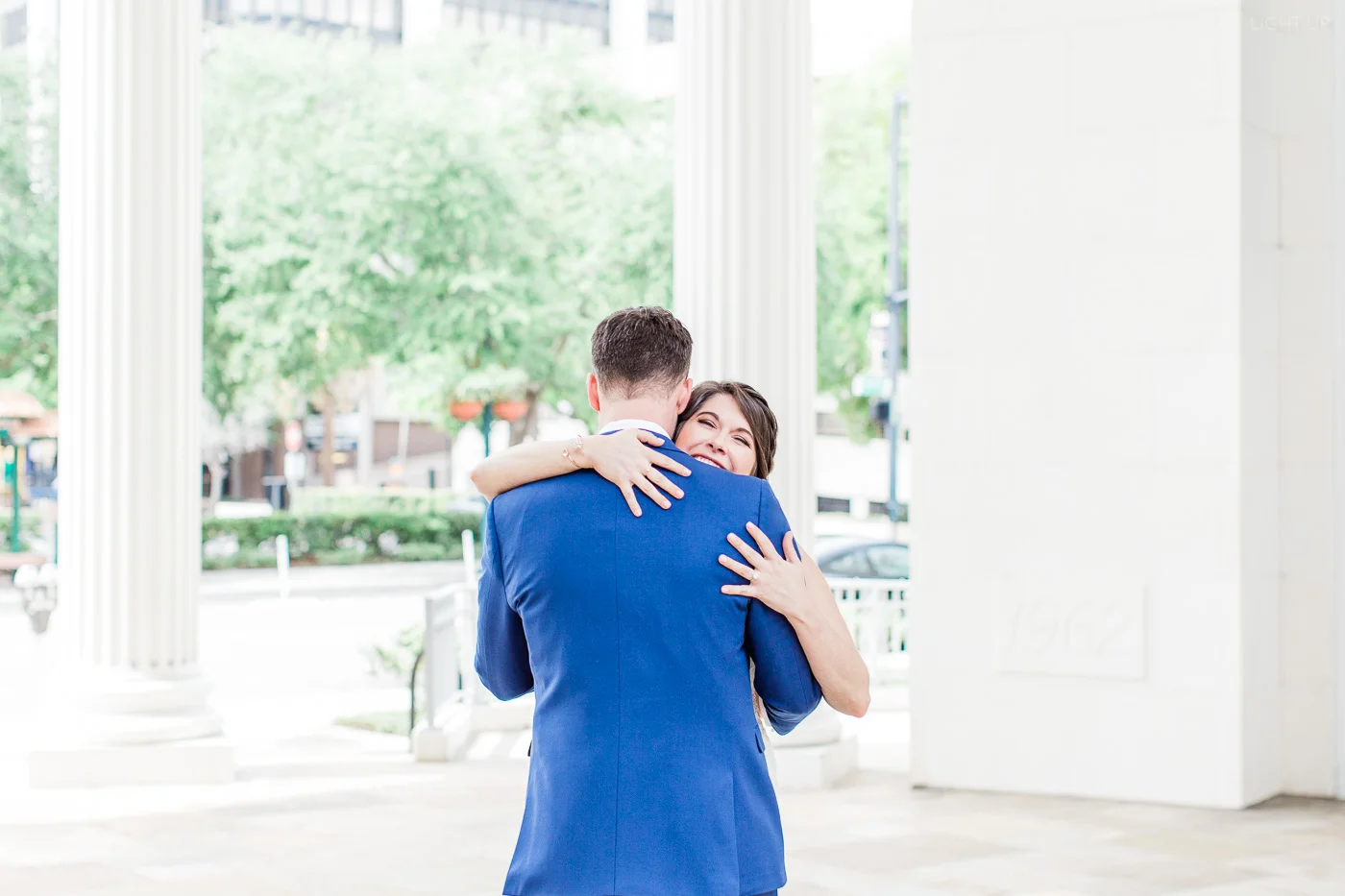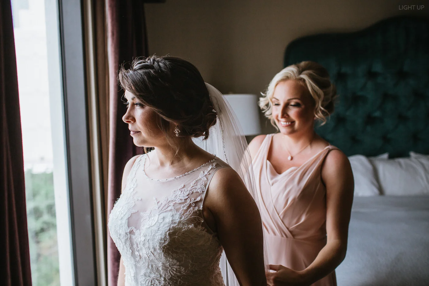 It was truly an honor that Elizabeth picked us out of over 50 local wedding photographers in the Orlando area that replied to her post. After the most amazing engagement session in downtown St Petersburg, we couldn’t wait for their wedding day to arrive. The bride & groom’s getting-ready photos took place a the elegant Grand Bohemian Hotel in downtown Orlando followed by their first-look and a round of lifestyle wedding photos with the city’s skyline in the background.