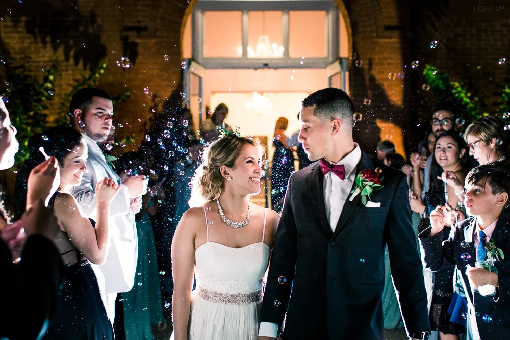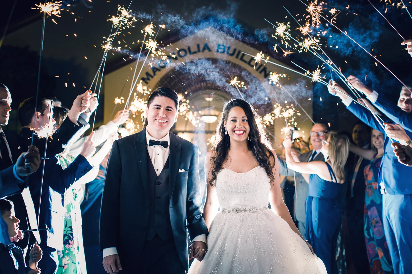 It is critical that the assistant is constantly aware of the photographer because there is little time for adjustments once things get rolling and verbal communication can be difficult after those sparklers are ignited. I make full use of the screen on the back of my camera to test the shot while guests are walking out and I make adjustments accordingly. This is the best chance to dial in my settings in order to nail the shot. If I like what I see during the test shots, I will like what I see during the sparkler exit. This is the last chance to tell my assistant that the guest need to move closer or further away from the area where the bride and groom will be walking through. Basically, I want to make a handful of test shots (as many as you need to) so I can know what to expect when the couple comes out and there’s no more tinkering with settings on the camera or on the flash when it’s go-time. I put emphasis on reminding my assistant to constantly be aware of me and check in instead of getting distracted with drunken chatty guests. This has made or broken my sparkler exits in the past; I can’t emphasize enough how frustrating it is to be 20 yards away trying to get the attention of my assistant in the middle of 100 loud guests while they are unwillingly caught in a conversation with a guest or coordinator. Sometimes you still need to make adjustments, but without a test shot, those adjustments are a hail mary.