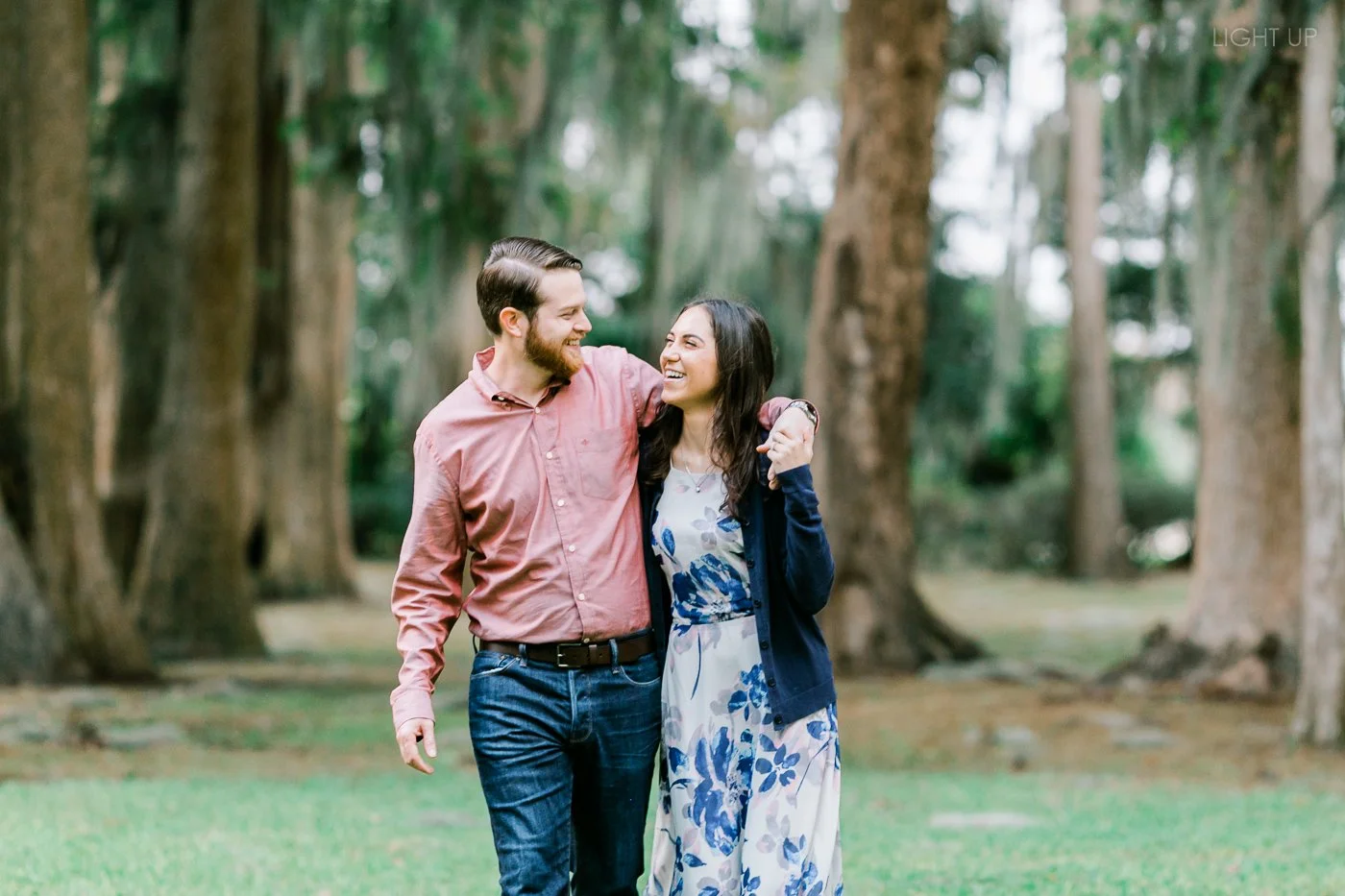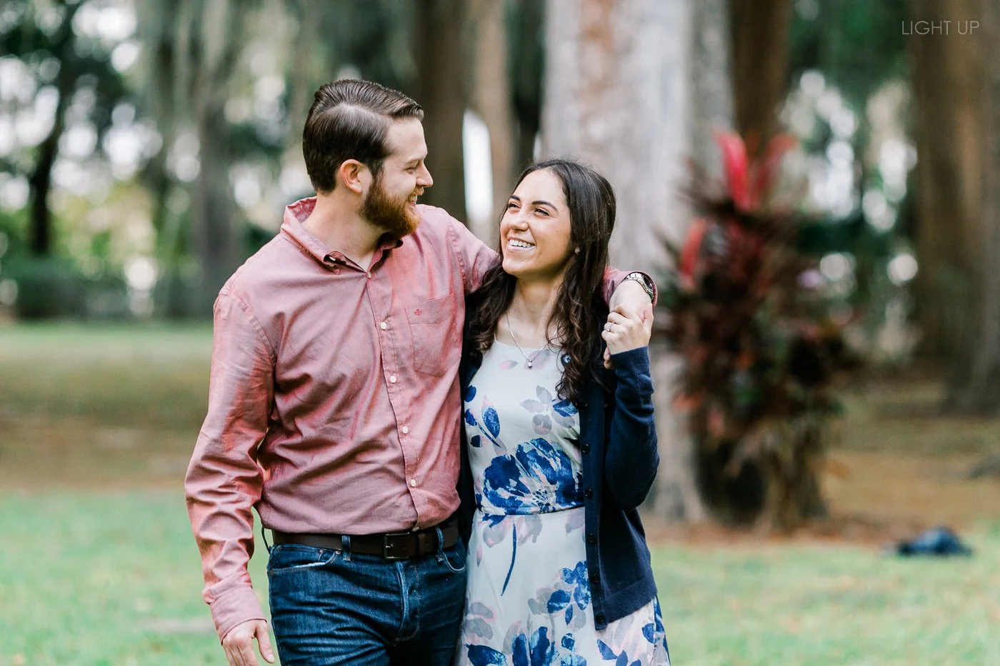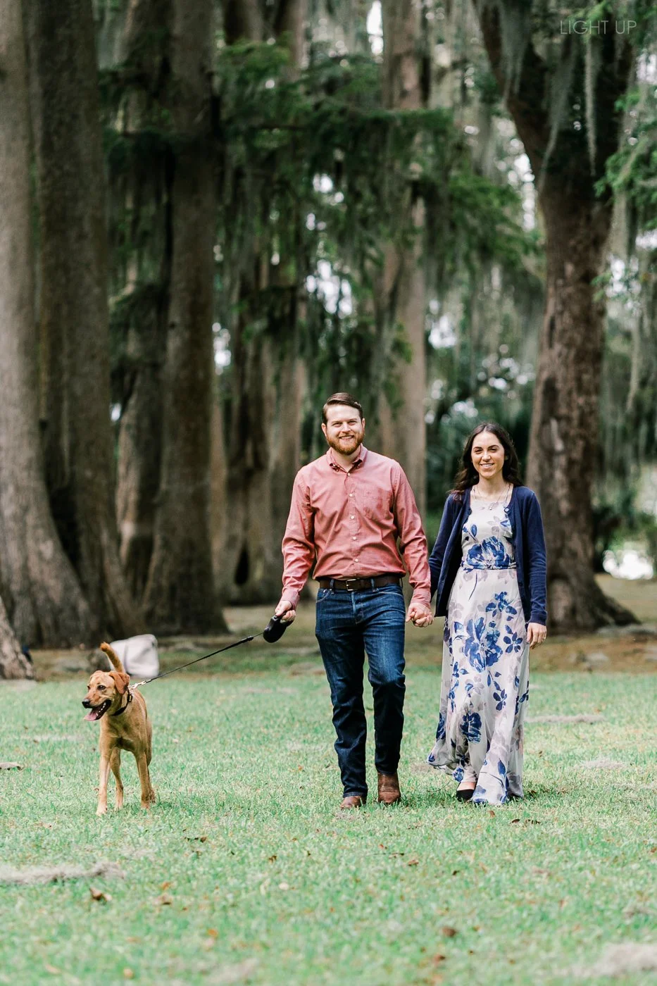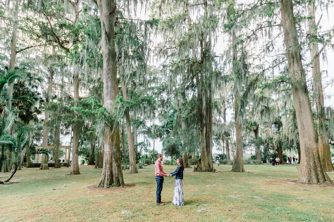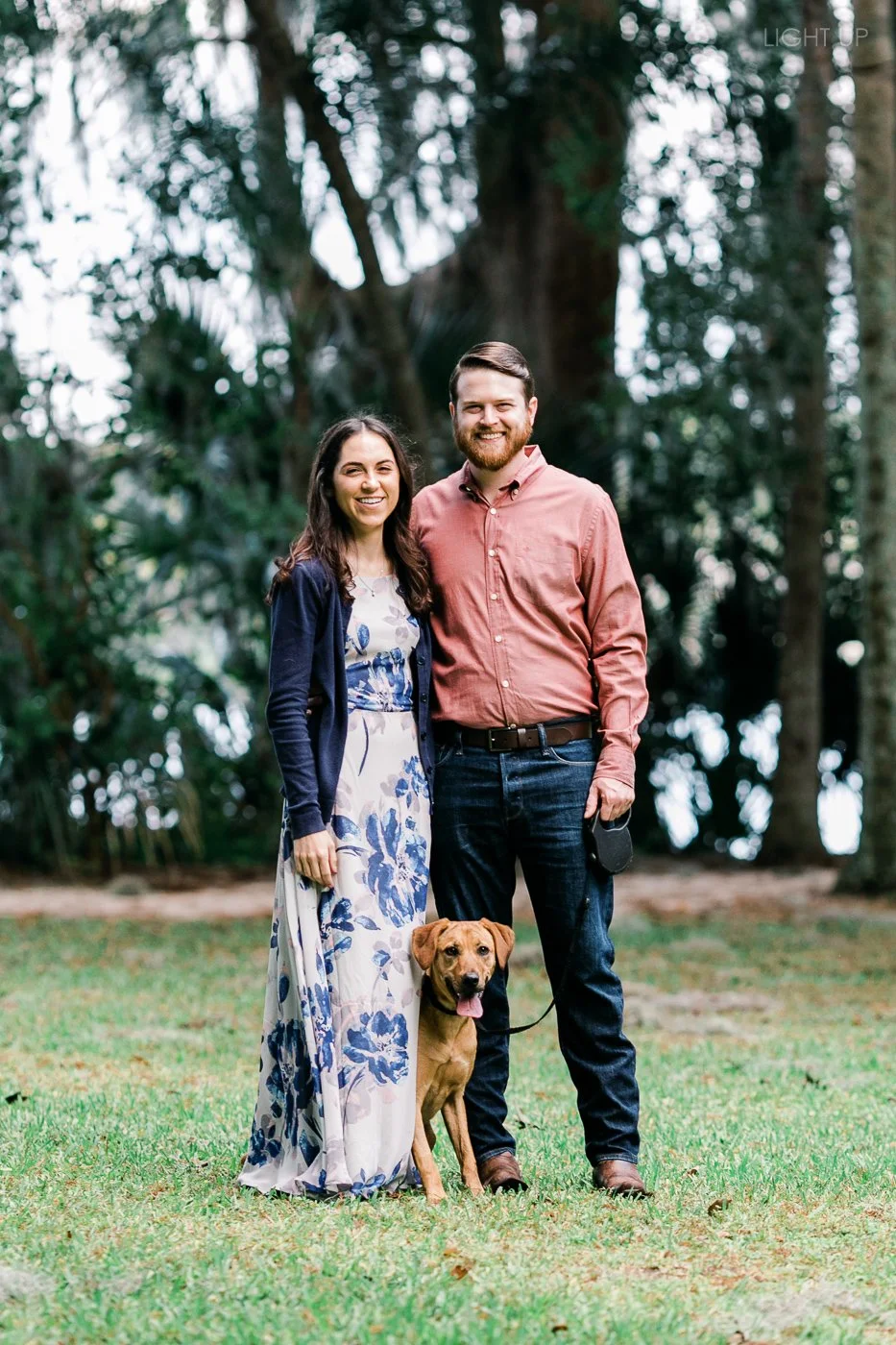 Looking for ideas for engagement photos in Orlando, Florida? Kraft Azalea Gardens in Winter Park, FL is a great location for engagement photos with natural light. There are tall trees, a lake, a dock, a pond, and all the lush greens you want for whimsical engagement photos. Best of all, you can bring your dog if you want to include your puppy in your engagement photos. These are just some of my favorite engagement photos from this couple’s engagement session.